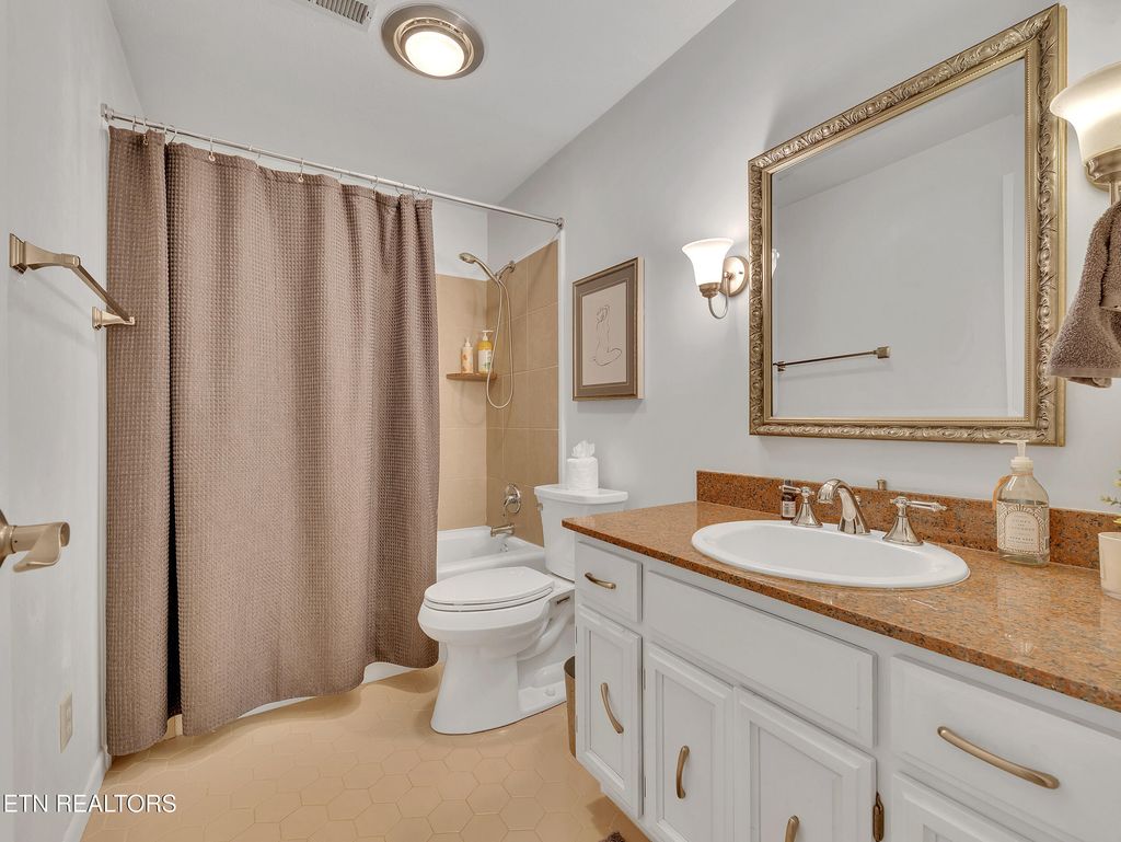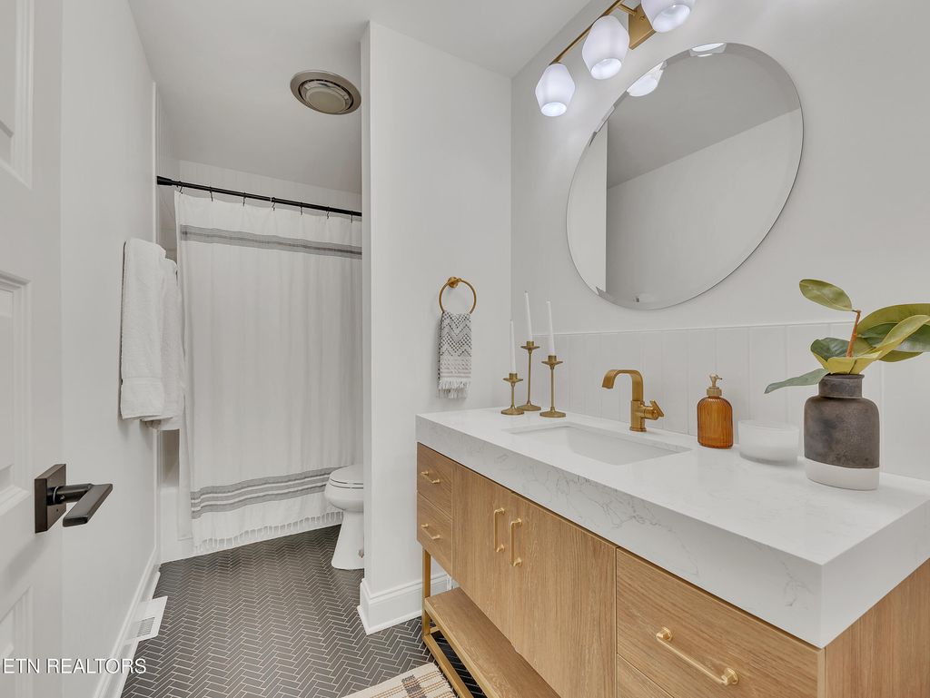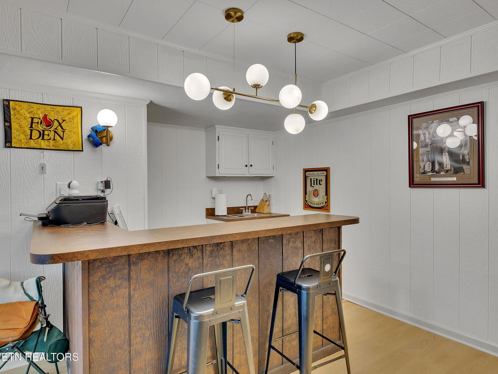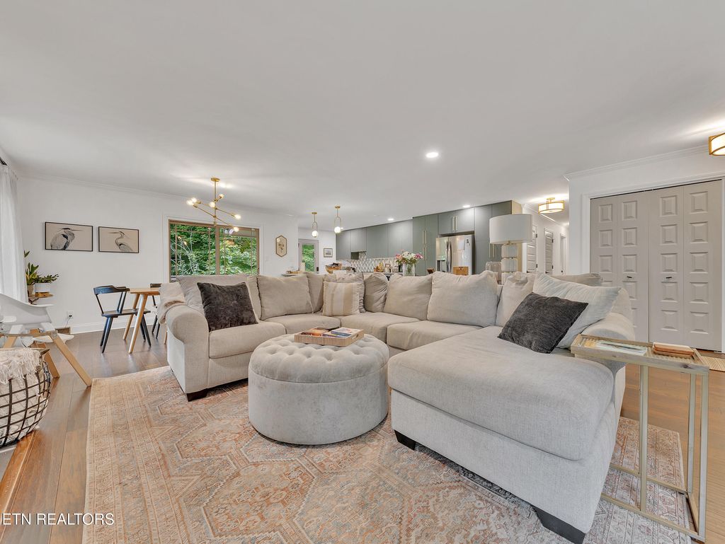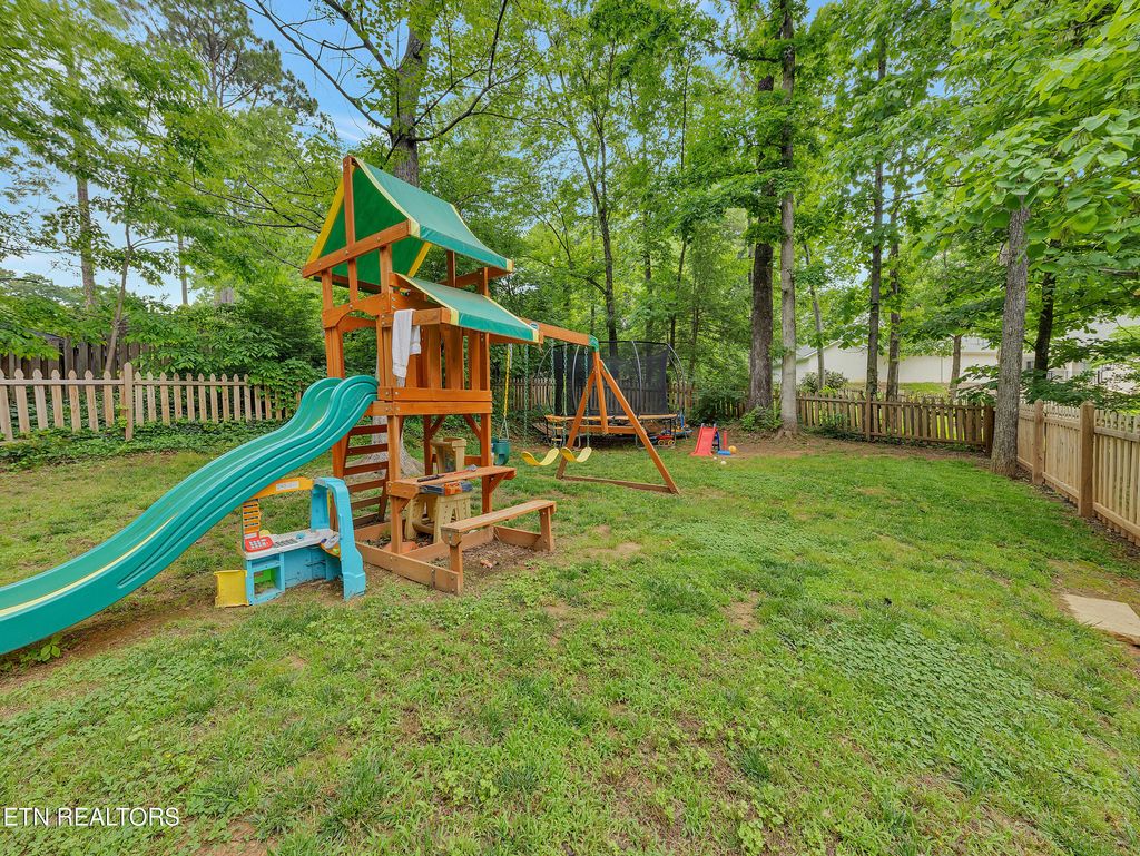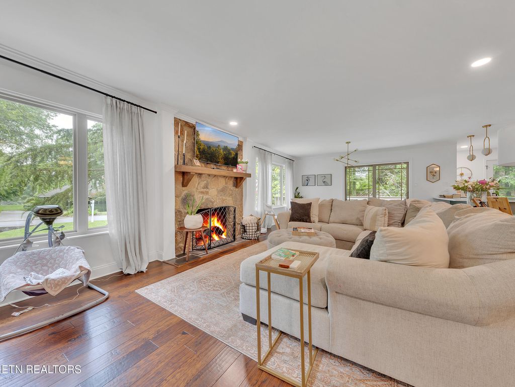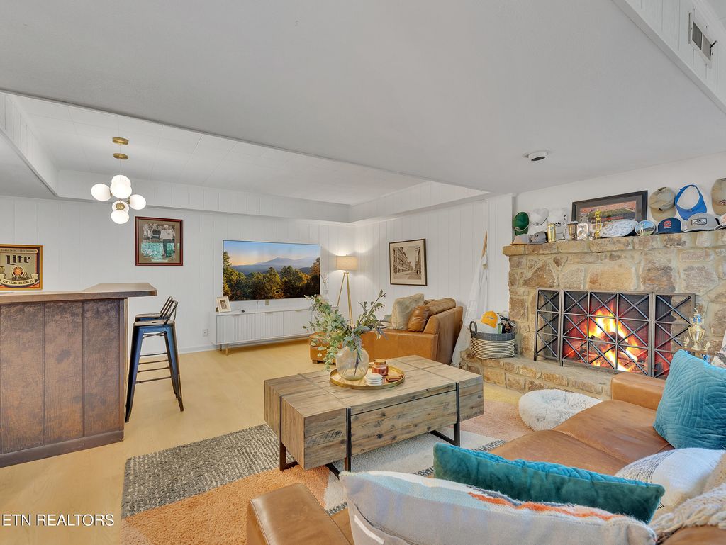 Welcome to Fox Den, one of Knoxville's most sought-after golf course communities located in the heart of Farragut! This beautiful basement ranch home features a practical floor plan with numerous updates and is one street away from Fox Den Country Club. As you step inside, you'll be greeted by a wealth of natural light that illuminates the spacious open-concept layout, radiating charm and vibrancy. The living room boasts hardwood floors and a stone fireplace, seamlessly flowing into the dining and kitchen areas. The sleek, modern kitchen has been thoughtfully renovated to include all-new flat-panel cabinetry with a functional design and layout, quartz countertops, an undermount single-basin workstation sink with a basin rack, new electric range (with a gas hookup), and a stylish backsplash. ALL NEW FEATURES INCLUDE: interior paint throughout, interior and exterior doors, recessed lighting, gorgeous guest bath, water heater (2023), newer roof (2020), gas insert for main level fireplace, water filtration system (2023), and recently installed CPI security system. The main level includes two generous guest bedrooms, a guest bath, and an oversized primary suite complete with a tile walk-in shower, a new double vanity, porch access, and a walk-in closet. The newly remodeled basement makes entertaining a breeze! The spacious rec room features a second fireplace, kitchenette, ample storage, full bath, and a fourth expansive bedroom with brand new LVP flooring. Outside, you'll find a gardener's paradise! Lush mature landscaping surrounds the property, and the newly installed fenced area is ideal for pets to roam and children to play. Fox Den Country Club offers social and golfing memberships, complete with a beautifully renovated clubhouse, two restaurants, a golf course, a swimming pool, tennis courts, a workout facility, and much more! Please note that HOA dues cover the maintenance of common areas but do not include Country Club membership and amenities.