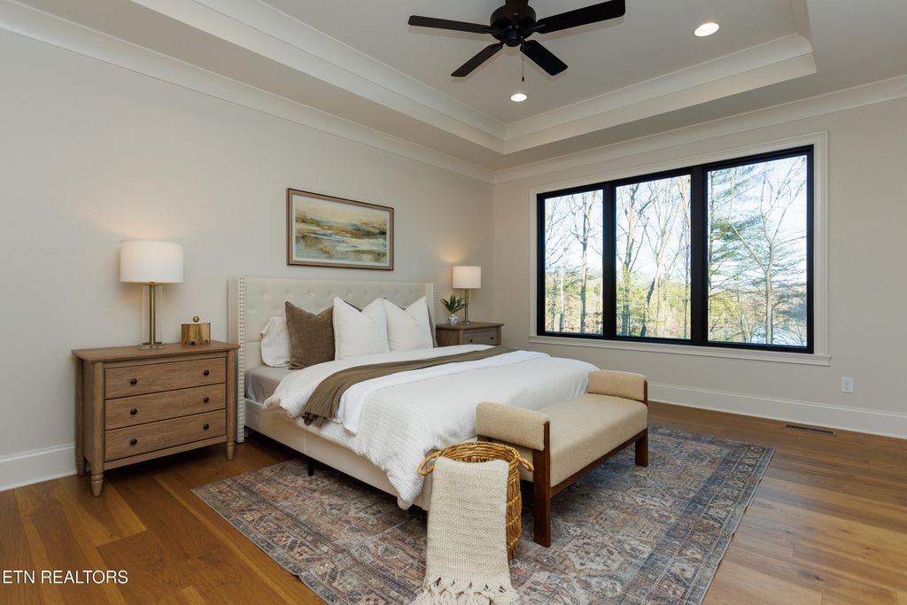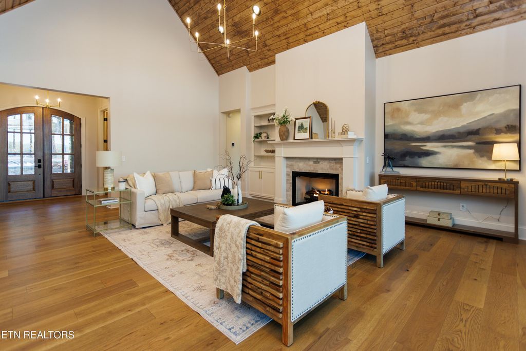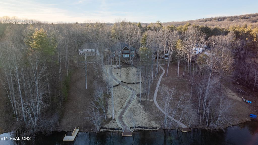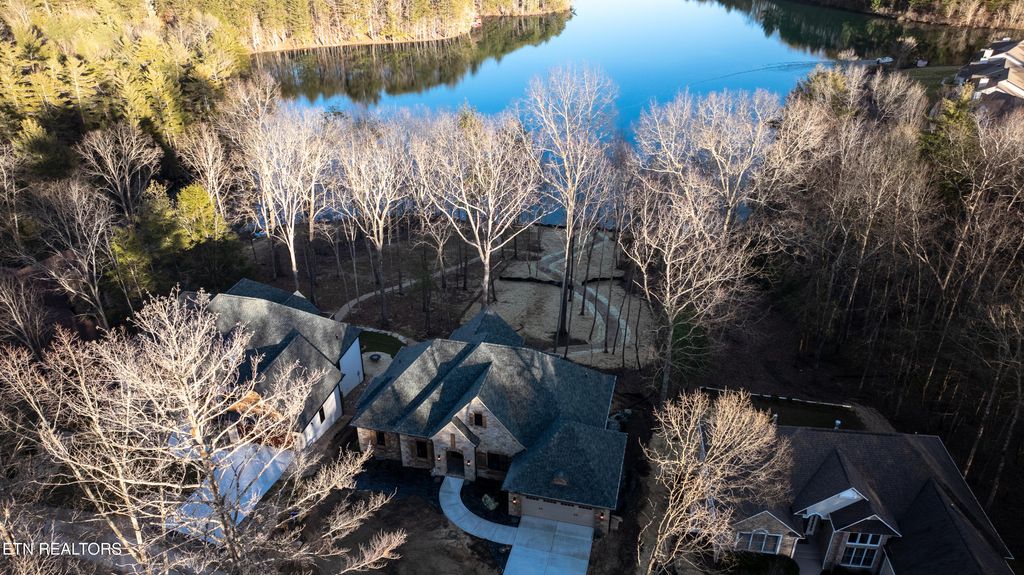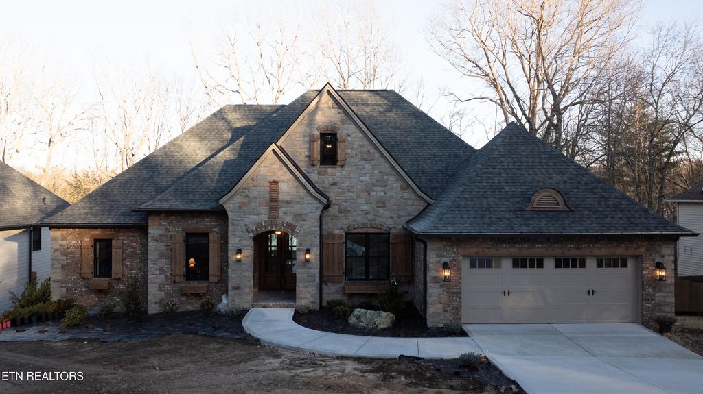Experience the best of Fairfield Glade living in this stunning, brand-new lakefront home with a private dock. Built by Fairfield Glade's premier builder, this French Country home is located on a peaceful cul-de-sac with incredible lake and mountain views. The main level features an open, flowing layout designed for easy living. The spacious Great Room and screened porch provide a perfect vantage point for enjoying the views. The main-level Primary Suite features a beautiful Roman-style walk-in shower, providing a spa-like experience. Everything you need is on the main floor, including a second bedroom, an oversized garage, and a large laundry room. The lower level offers a private space for guests with a bedroom, en-suite bath, and a family room with a built-in bar. A multi-slide door leads to the lower patio, providing direct access to the lake. This home combines elegant design with a practical layout, making it an ideal choice for a comfortable and convenient retirement.