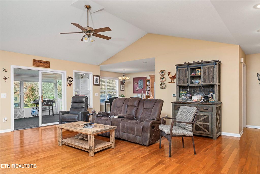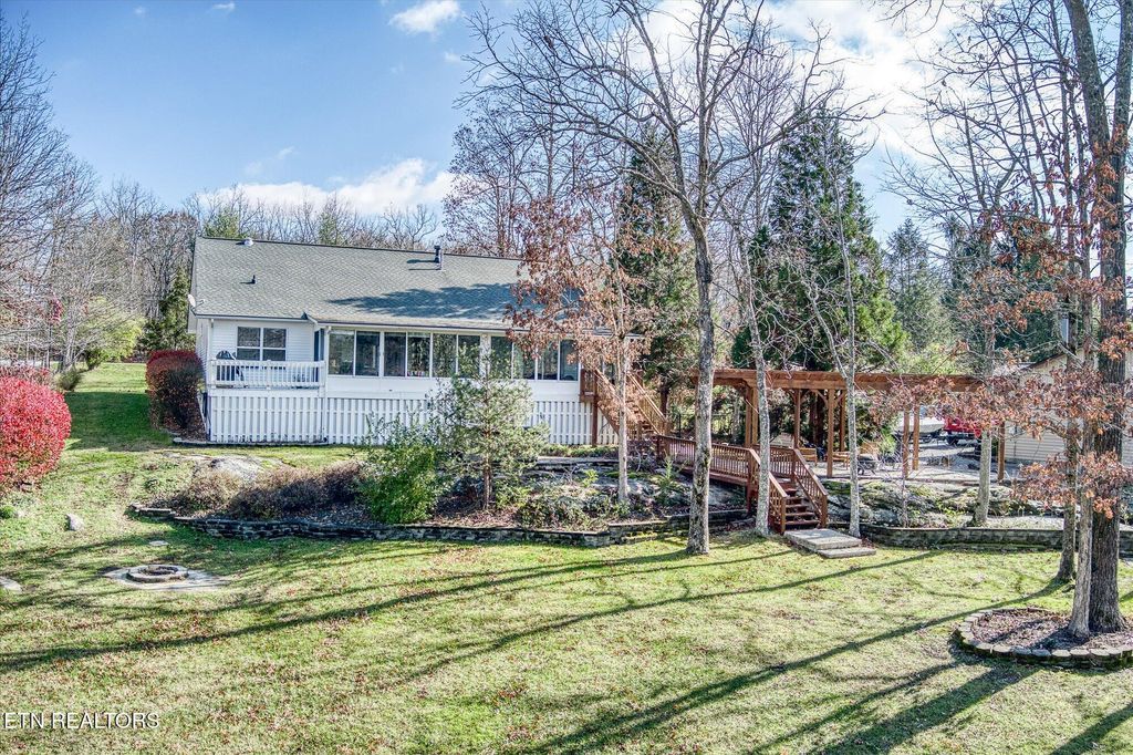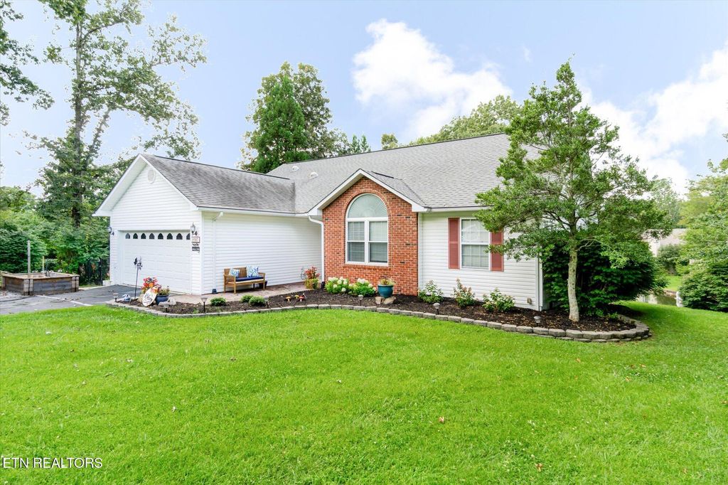 LAKE FRONT HOME! Enjoy Lake Life in this beautiful home located on Lake Tansi. This home with the addition of the heated sunroom is approximately 1903 sqft. The home features hardwood and tile flooring throughout. The large main living space with vaulted ceiling and large windows for natural light is a perfect gathering place with a beautiful natural gas fireplace for cozy evenings. The homes kitchen with dining room combination features hardwood cabinets, stainless appliances and breakfast bar. The oversized main bedroom features walk in closet and on suite with tiled shower and double vanity. The homes second bedroom and bonus room (perfect for a 3rd bedroom or office) share the homes second full bath. The laundry room is located as you enter from the garage. Enjoy the lake from the homes 300+ sqft enclosed sun/multipurpose room. The exterior of the home is well kept vinyl siding with Brick accents. A large pergola over a stone patio is perfect for outdoor entertaining near the water. The homes dock is complete with electricity for evening use. Extras Include: Home has space for your RV or Boat, Home, Dock, Deck and patio recently pressure washed, new exhaust fans in both bathrooms, small fenced area on side of the home for your pet. Pump system to use lake water to water yard/flowers/garden Buyers to confirm all information and measurements in order to make an informed decision. Contact List Agent today for your private showing!