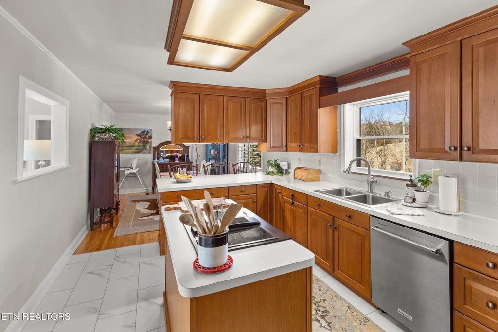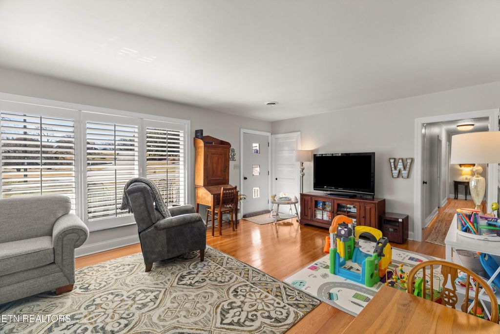 More than just a home. Conveniently located just one mile from I-40 Exit 417, this solid brick rancher offers mountain and Douglas Lake views in historic Dandridge, TN. The home features 3 bedrooms and 3 full baths, with approximately 1,458 sq ft of finished space on the main level plus an additional 729± sq ft finished lower level with a full bath. The remaining unfinished lower-level area provides abundant storage and flexible options, including recreational space or vehicle garage use. A standout feature is the first-class insulated garage/workshop"”ideal for a camper, vehicles, hobbies, equipment, or extensive storage. An additional 700± sq ft outbuilding offers even more versatility. Situated on a 1.50± acre parcel with public water and sewer, plus Tri-Lite fiber internet available. The lower backyard is well-suited for recreation, gatherings, fire pit evenings, or outdoor entertaining. A finished sun porch completes the property, offering a peaceful space for relaxing and reading. Convenient location, quality construction, and exceptional outbuildings"”this property is a rare find.