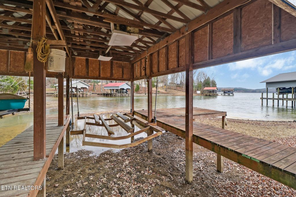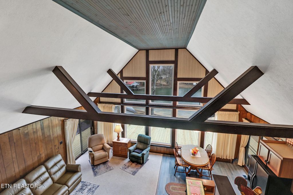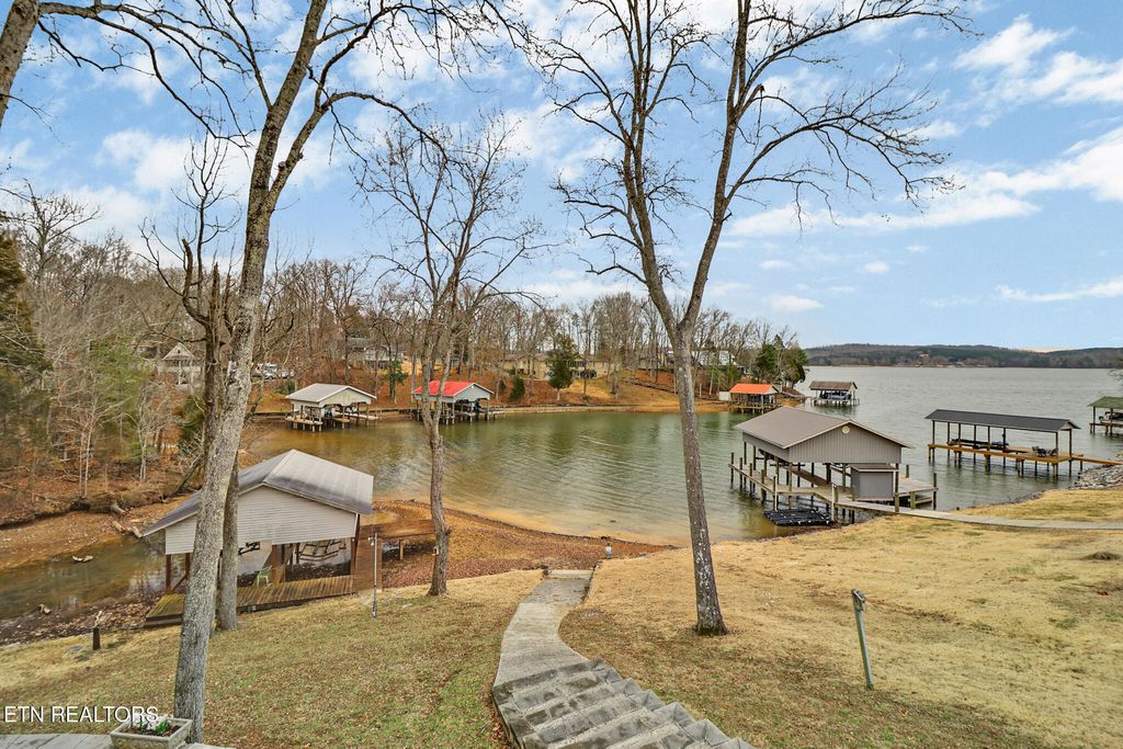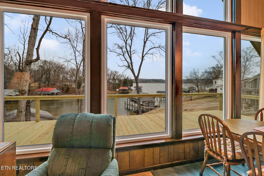 Escape to your own FULLY FURNISHED WATERFRONT HOME OASIS on stunning Watts Bar Lake. This 3 bedroom, 2 bathroom home features a newer floor to ceiling glass window wall that seamlessly blends indoor and outdoor living. Entertain in style with an open concept fully stocked kitchen, dining, and living room. A spacious loft accommodates 2 beds and the downstairs area features a second kitchen, dining, living room with fireplace(insert), full bathroom, laundry room, and a workshop area in the lower garage.