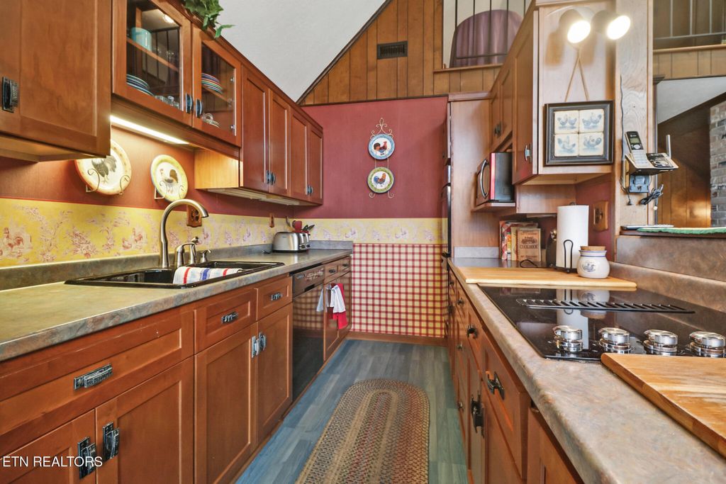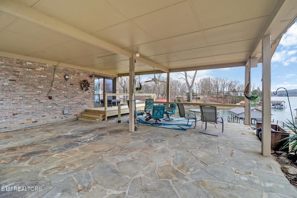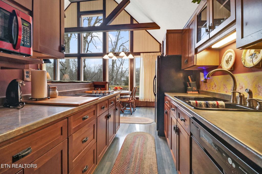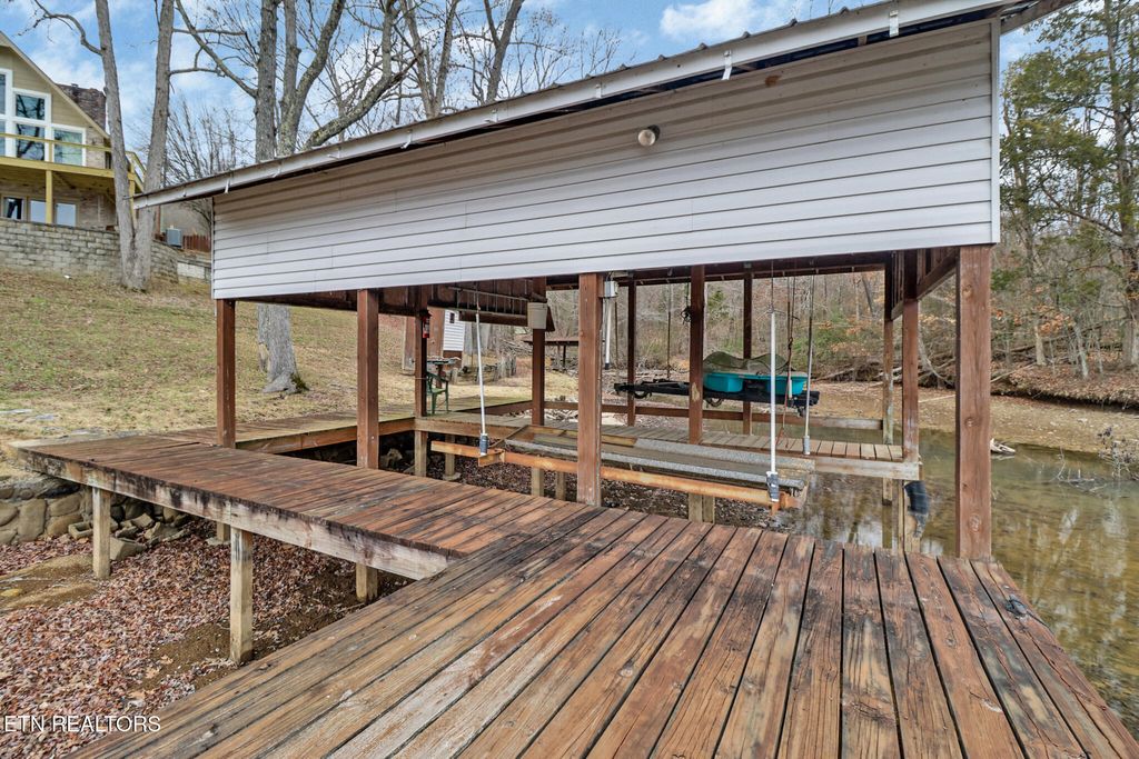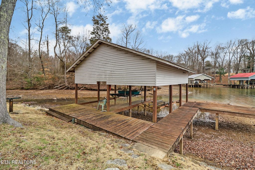 Escape to your own FULLY FURNISHED WATERFRONT HOME OASIS on stunning Watts Bar Lake. This 3 bedroom, 2 bathroom home features a newer floor to ceiling glass window wall that seamlessly blends indoor and outdoor living. Entertain in style with an open concept fully stocked kitchen, dining, and living room. A spacious loft accommodates 2 beds and the downstairs area features a second kitchen, dining, living room with fireplace(insert), full bathroom, laundry room, and a workshop area in the lower garage.