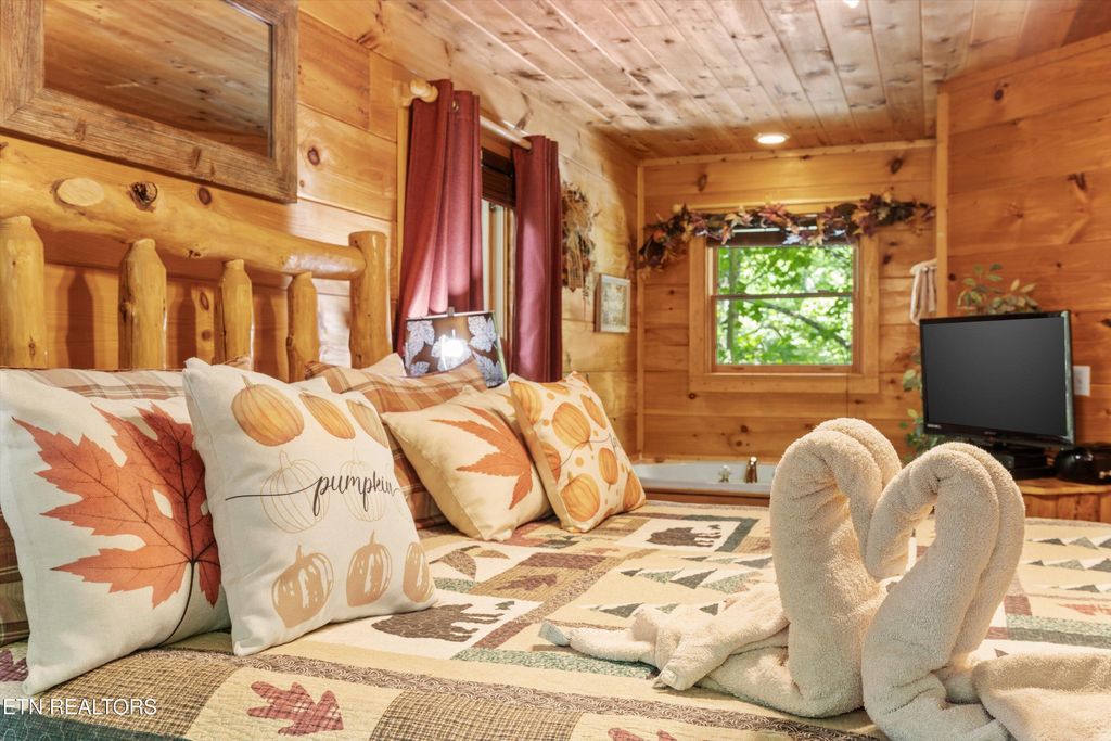 Charming honeymoon or family cabin located in the heart of the Smoky Mountains, situated on a large, private corner lot offering exceptional wooded privacy. This well-maintained retreat features a spacious loft game room with a kid's hideout, creating the perfect space for family fun or additional guest accommodations. The private back deck includes a relaxing hot tub, ideal for enjoying peaceful mountain evenings.