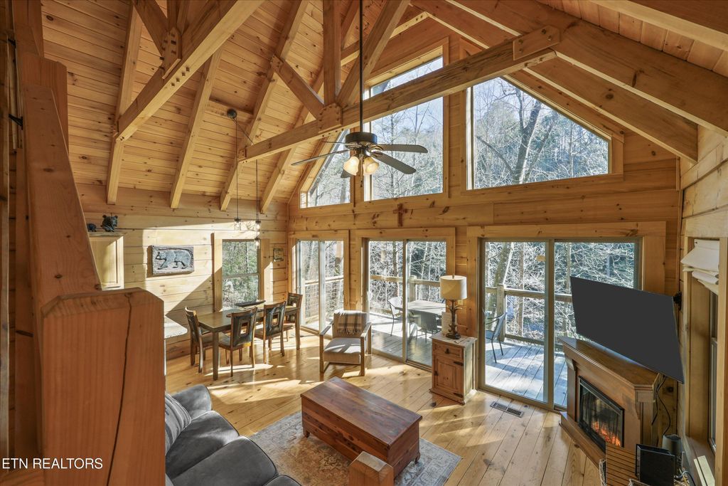 Beautiful 2-bedroom, 2-bath log cabin located within the Gatlinburg city limits with an exceptional location. Enjoy easy access with no steep roads, city utilities, and a private, wooded setting--all within walking distance to Highway 321 and the trolley stop. This cabin features an all-wood interior, hardwood floors, cathedral ceilings with exposed beams, granite countertops, a fire sprinkler system, and abundant natural light from expansive windows. Relax in the private hot tub and enjoy the outdoor fire pit area, perfect for entertaining. Offered fully furnished, this is a proven, self-managed rental with consistent performance, generating $75,000+ annually.