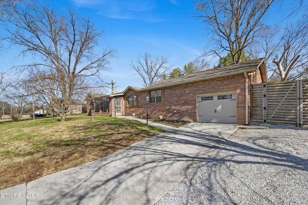 All on ONE level brick rancher, zero carpet. Lovely 3BR/2BA w/ upgraded eat-in kit: SS appliances, slate floors, island bar, wet bar. LR w/ HDWD, cathedral ceil, electric FP, built-ins; HDWD DR. Custom main bath w/ walk-in shower, soaker tub, his & her closets. Cozy sunroom for morning coffee. LR wired for surround sound. Crown molding, upgraded trim, 9' ceilings, can lighting, custom features. 13x25 attached garage. Huge private fenced bkyd, park-like setting, two 9'x12' gates for RV parking on unrestricted lot. Large patio for outdoor entertaining. Walk to Karns High. SHED DOES NOT CONVEY. Buyer to verify all measurements.
