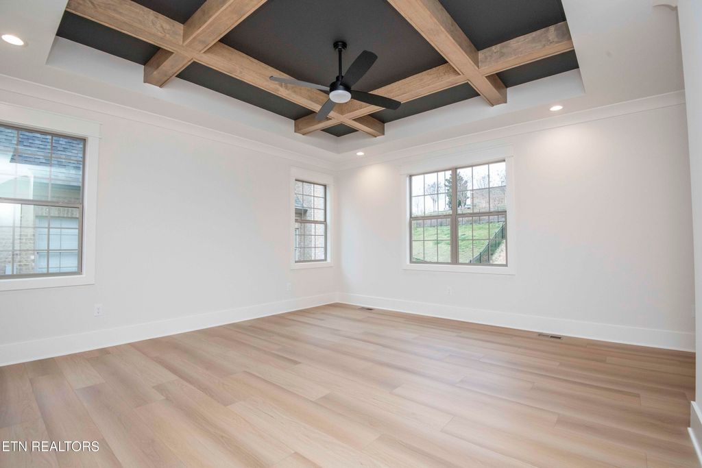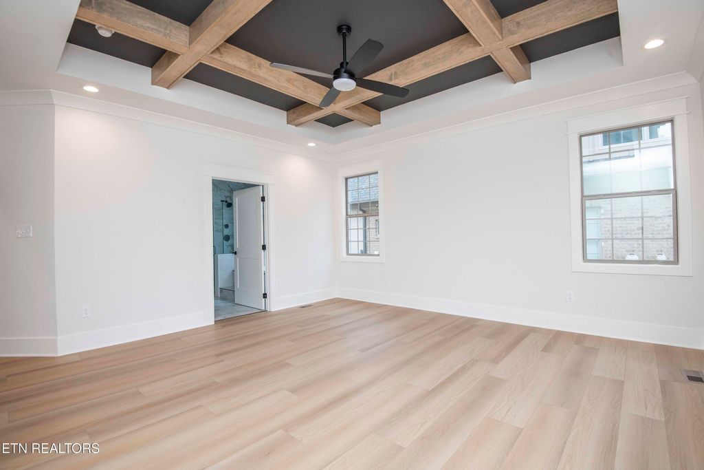 Six oversized bedrooms plus a bonus room offer exceptional flexibility for today's lifestyles. The main has level 2 bedrooms. The primary suite on main includes a coffered ceiling with exposed beams, oversized walk-in closet, shower, soaking tub, with porch access.