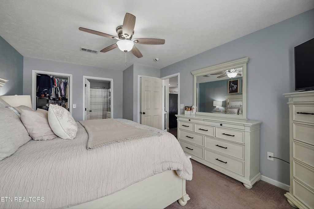 The spacious primary suite features a walk-in closet and private ensuite bath with a large stand-up shower, an oversized laundry room and professional organization systems in some of the closets add extra functionality.