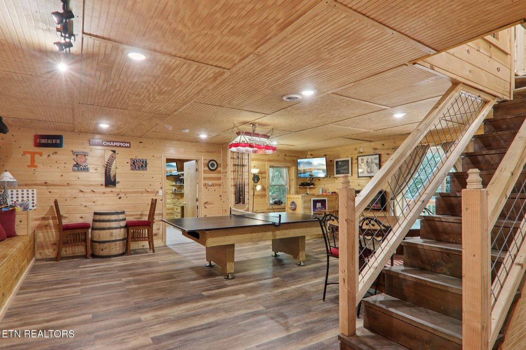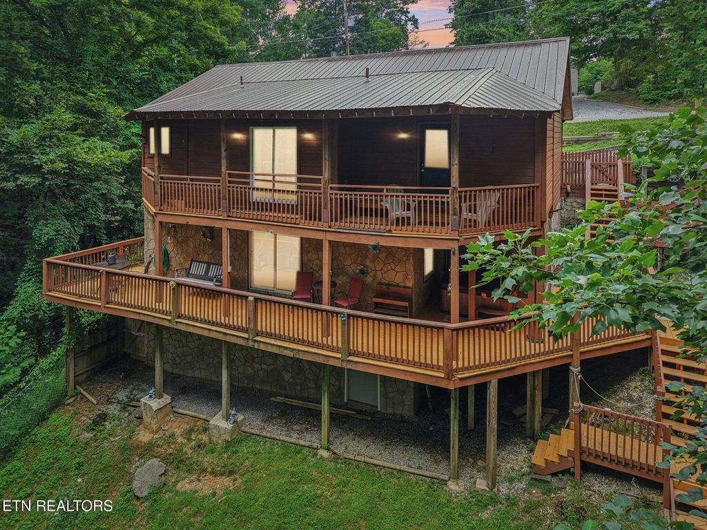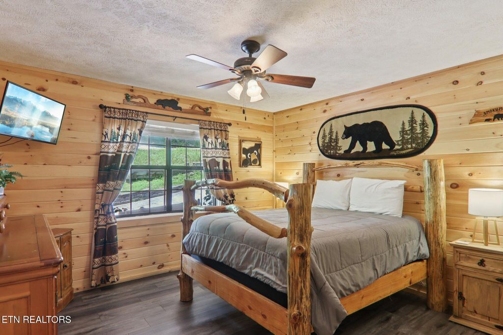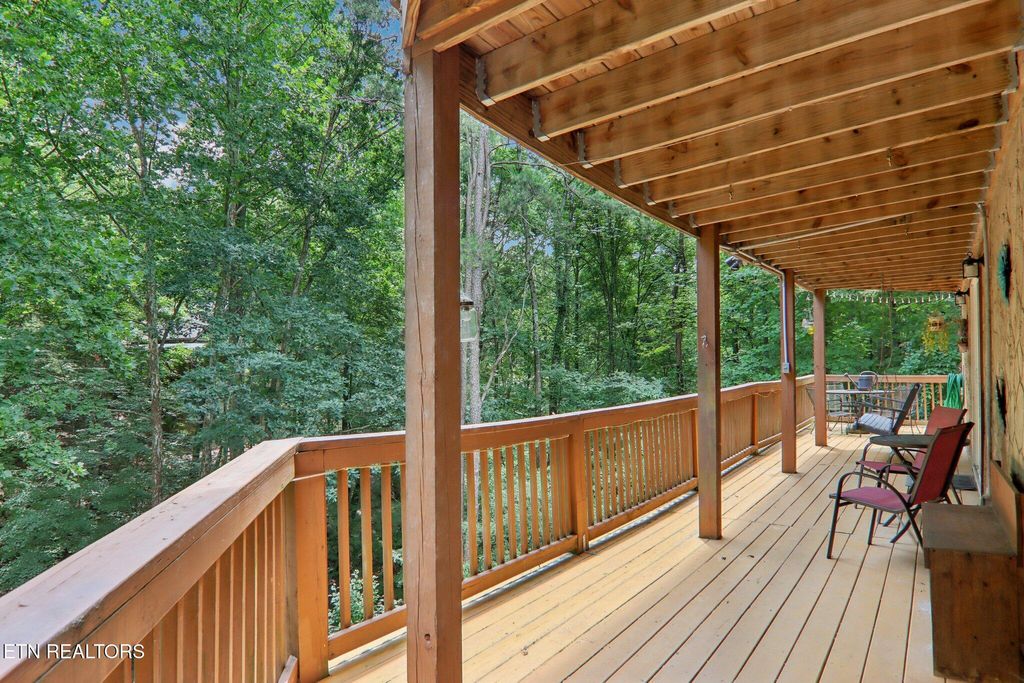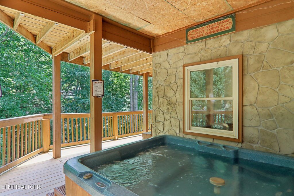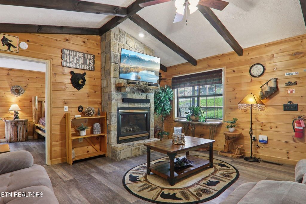 Nestled just off scenic Wears Valley Road, this fully furnished 2-bedroom, 3-bath single-family home offers over 2,200 sq ft of finished space and exceptional potential as a vacation rental or second home. With TWO BONUS ROOMS providing extra sleeping space, this home comfortably accommodates large groups--perfect for maximizing rental income. Step into a warm and inviting living room with a gas fireplace; also on the main floor are two bedrooms, two baths, kitchen, and bonus room. Head downstairs to the entertainment-ready basement, featuring a pool table, darts, gaming console, full bar, and a third full bath--a true game-day haven for guests. All this, and a full size laundry area! Outside, enjoy the hot tub and take in mountain air from two spacious decks overlooking a fenced backyard--ideal for kids, pets, or outdoor gatherings. Newly constructed staircase affords easy access to the seasonal stream at bottom of property. A separate storage building adds even more functionality to the .52-acre lot. Conveniently located near the attractions and amenities of Pigeon Forge, Gatlinburg, and Townsend, this home is ready for immediate use or rental with furnishings included. Whether you're looking to invest, escape, or entertain--this mountain retreat checks all the boxes!