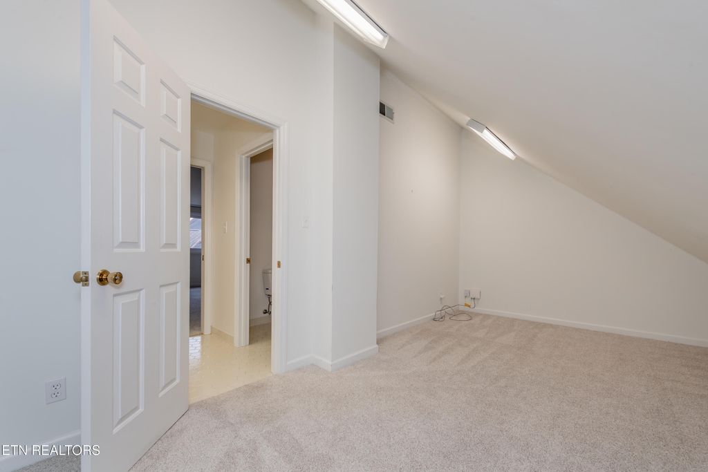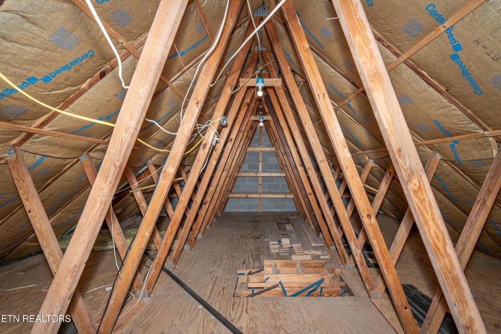 More surprises are revealed upstairs with a carpeted storage/wrap room leading to a floored attic storage space over the garage.