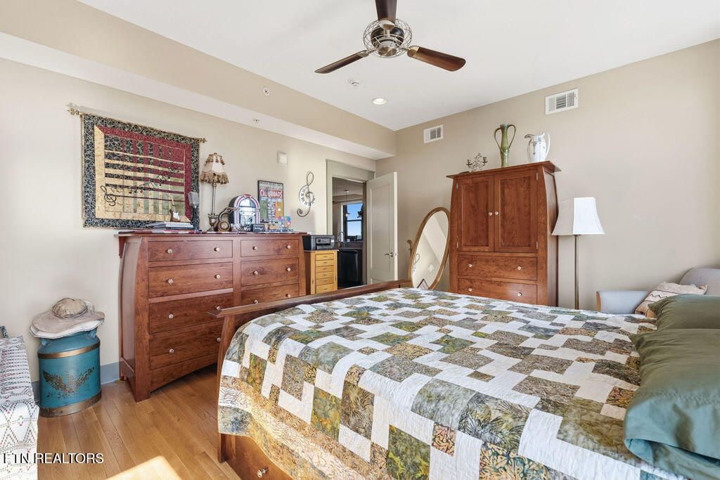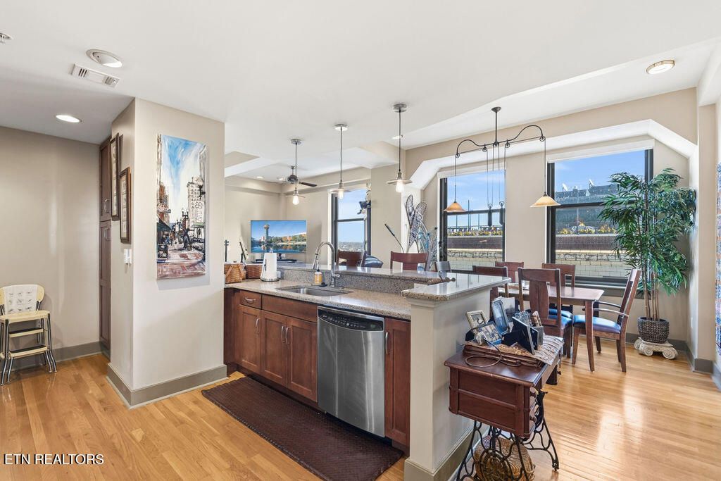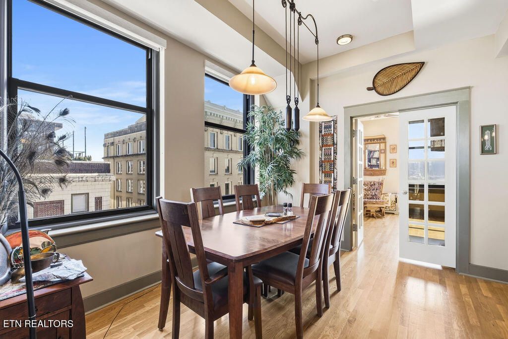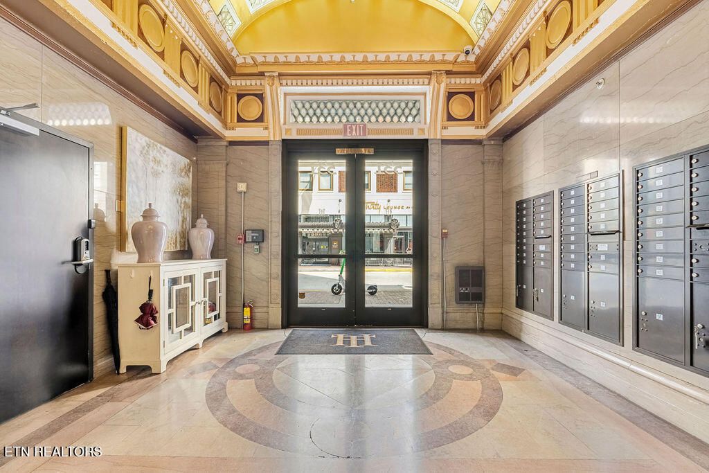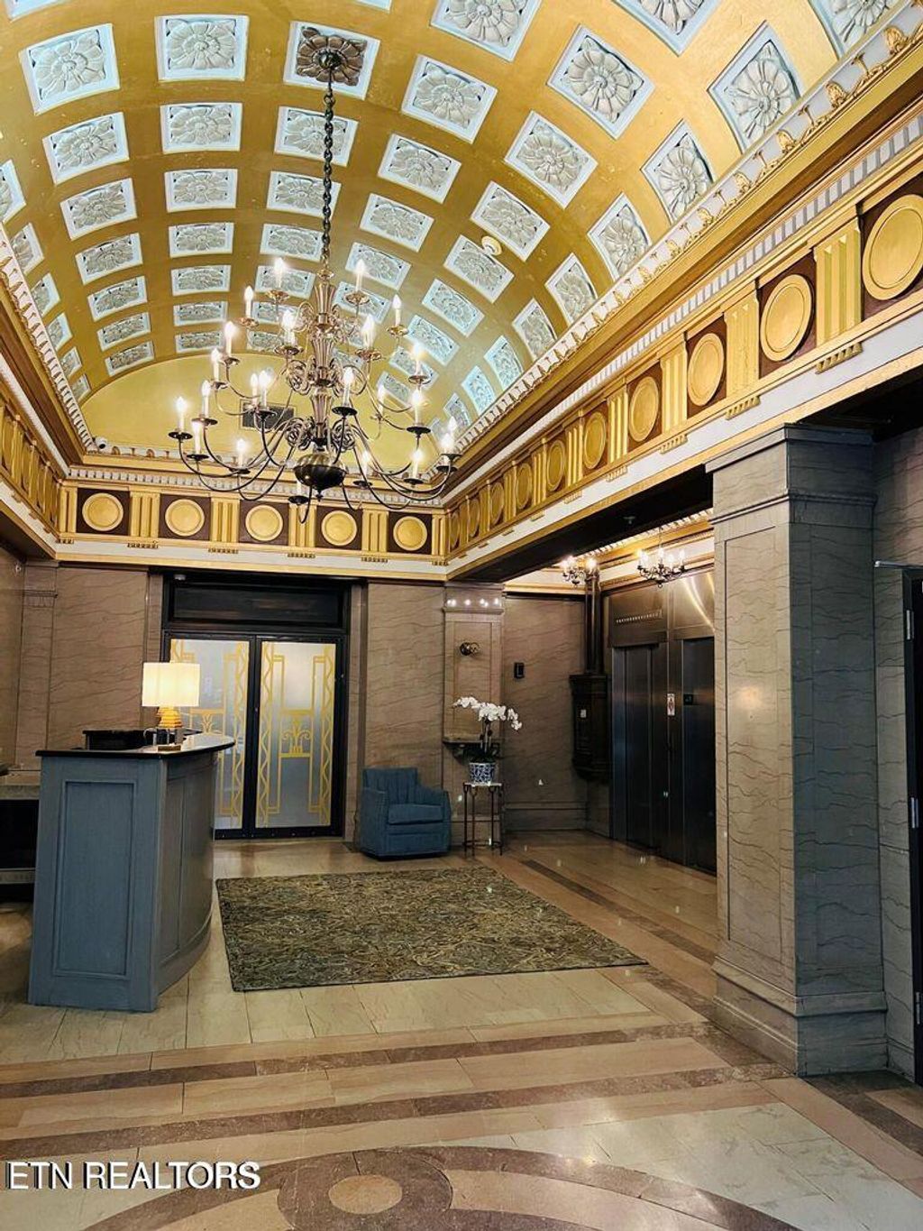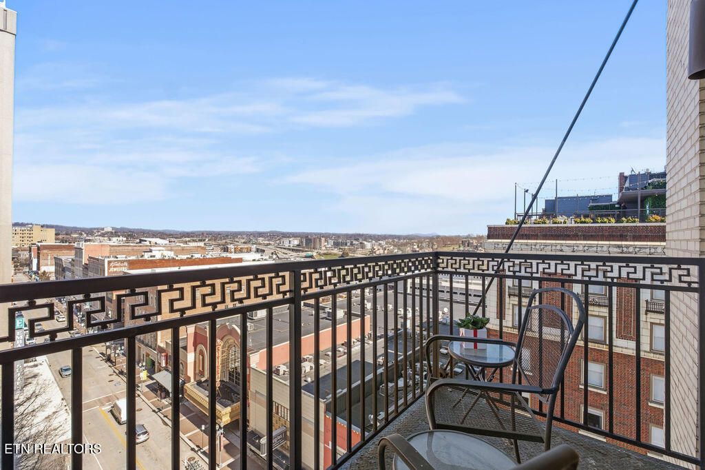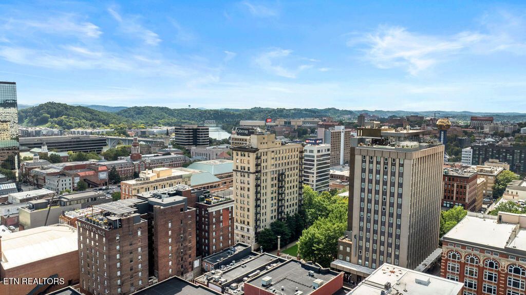 Experience the epitome of refined urban living in Downtown's vibrant Theater District. This remarkable 9th floor two-bedroom residence in the premier Holston Building offers a bright, light-filled living area and open kitchen, expansive windows providing sweeping views of the downtown skyline, beautiful hardwood floors, generous storage and tasteful fixtures. Relax on your spacious balcony perched above Gay Street's Krutch Park. This unique development boasts a friendly concierge service and community room overlooking bustling Gay Street. Located on the first floor and lower level of this Holston Building, you'll find the exceptional Vida restaurant and unique Vault lounge, constructed in the circa 1913 vault of the original Holston Bank. Stroll outside and enjoy many of the city's most popular markets, restaurants and cafes, entertainment venues, fitness studios & galleries. And with proximity to the University of Tennessee, new Covenant Health Park stadium, artsy Emory Place, Downtown North, PetSafe dog park, World's Fair Park & the City's extensive greenway system, you can enjoy it all while living in The Holston. Originally erected in 1913, this iconic building was redeveloped into elegant condominium residences in 2008. The approximate size is per Courthouse Retrieval System and is an estimate only. Buyer to verify size, taxes & HOA fees, which are subject to change. Base HOA fee of $486.32/mo includes water/sewer. $34/mo is added for the development's broadband internet package from AT&T U-verse. AirBnB / Short-Term Rentals are not permitted in this development. Public parking is offered at metered & short-term spaces along Gay Street and Church Avenue, and also in numerous garages nearby. Parking on nights and weekends is generally free in city-owned garages, including State Street Garage just 1 block away; subject to availability. There is a $395 transfer fee paid by the Buyer to the HOA at Closing.