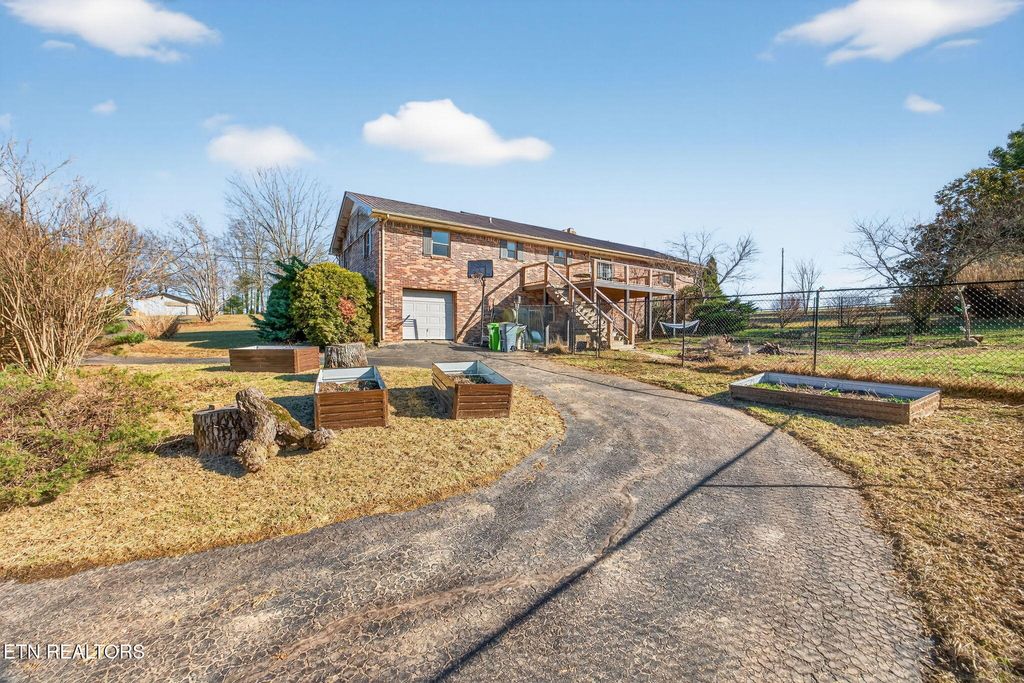 Peaceful country living on 5 beautiful acres in Tennessee! This 3-bedroom, 3 bathroom home features a welcoming front porch with mountain views and a back deck perfect for enjoying beautiful sunsets. The scenic property includes a pond and open land ideal for gardening or hobby farming. Improvements include a greenhouse (high-tunnel hoop house) workshop building, one-car garage, and carport. Large laundry room and living room with a brick fireplace with gas logs. This home has lots of room both upstairs and in the basement and excellent storage and workspace. Enjoy quiet rural living with low property taxes of only $820.33 per year. A great opportunity for those seeking space, views, and a country lifestyle in Tennessee, plus the benefits of high-speed fiber internet, public water and the shopping and conveniences of Crossville, TN. HVAC New in 2022, Roof 8 years old, Water heater 8 years old. Septic pumped in 2021.