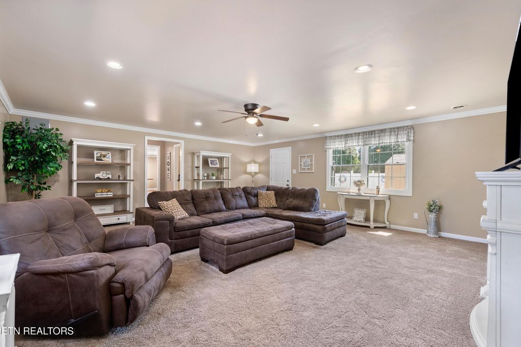 Toward the back of the home, the spacious living room offers a comfortable and more private area to relax and unwind.