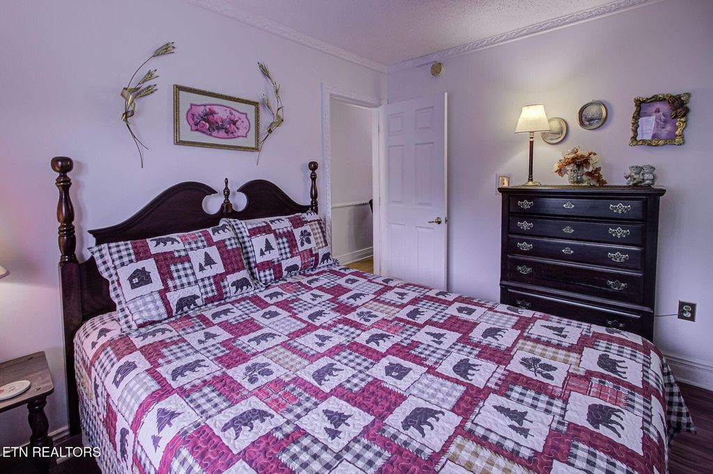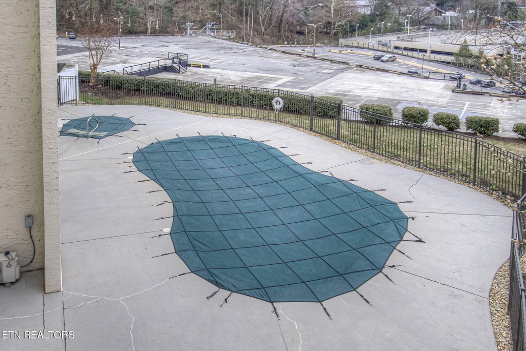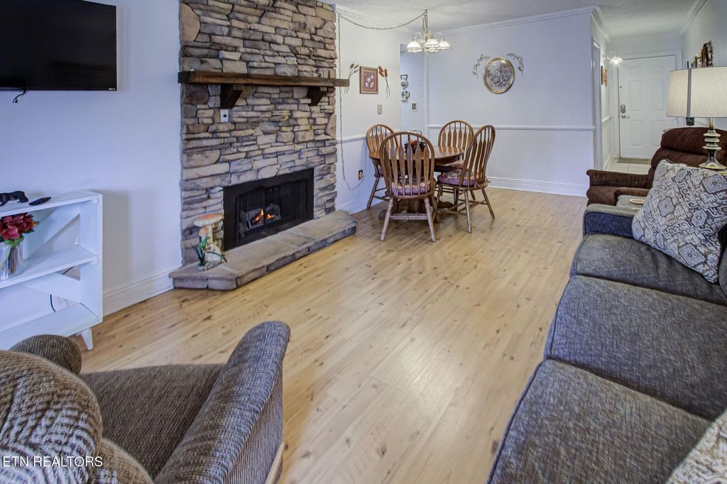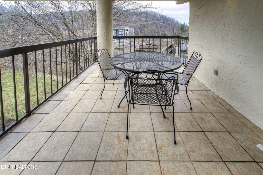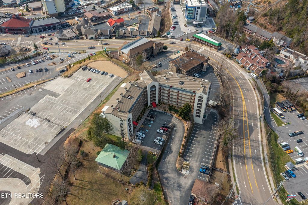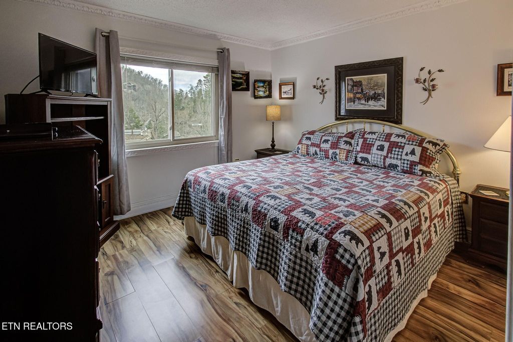 Discover a charming 2-bedroom, 2-bath contemporary condo just a short stroll from downtown Gatlinburg. Nearly 800 sq ft, the open great room centers on a warm masonry fireplace and flows to a dining area and well-equipped kitchen -- ideal for relaxing evenings or hosting guests. Both bedrooms offer private bathrooms and closets for maximum comfort and privacy. Step outside to your secluded rear covered balcony overlooking the community pool, hot tub, and views of downtown and the mountain range! This professionally managed complex includes a community swimming pool, adding rental and leisure appeal. With an unbeatable location, you're minutes from the scenic Great Smoky Mountains National Park and nearby recreation like Ober Gatlinburg, plus the shops, dining and wonderful attractions of downtown. Perfect as a primary residence, second home, or turn-key short-term rental -- this condo blends comfort, convenience, and strong income potential.