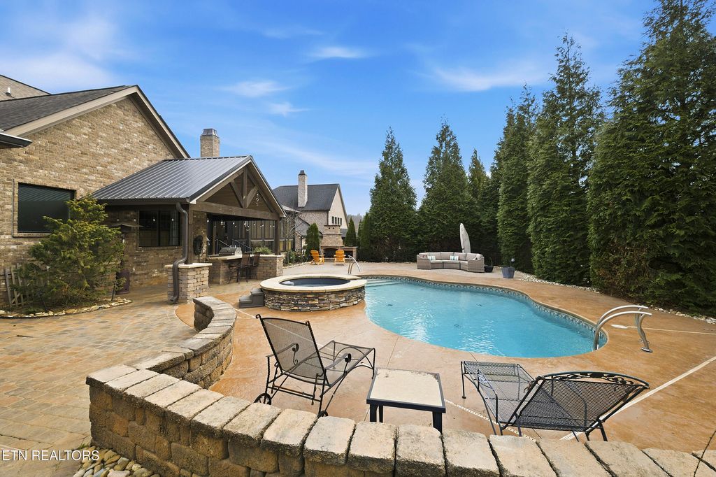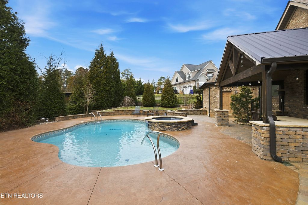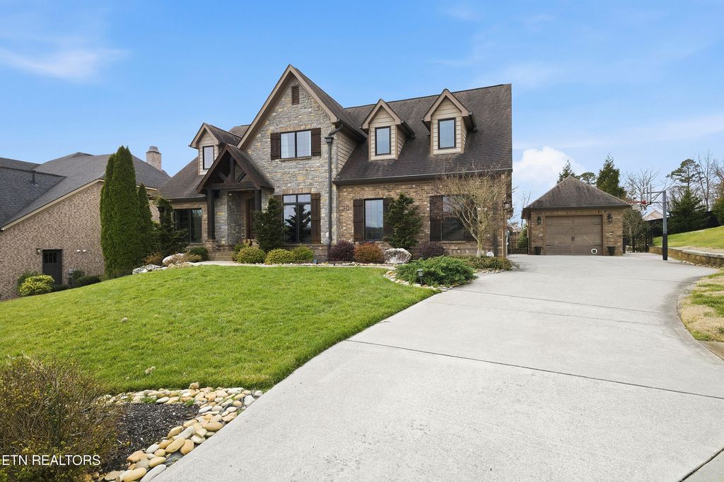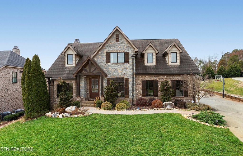 This traditional home and a craftsman touch unite to create a stunning brick and stone home located in Lake Cove. Up the brick paver front walk and onto the gabled front porch, guests and family are welcomed via a large arched front door. Beautiful wood floors and a neutral paint palette unfold and set the stage for you to create the home best suited for you and your sense of style. A spacious dining room with oversized windows allows ample natural light flanks the entry and opposite sits a space perfect for a home office or more intimate living. The primary living area has an open vaulted ceiling, a ceiling high stack stone fireplace and seamless flow into the eat-in kitchen with breakfast bar, ample counter space, stainless appliances, gas cooktop, and a large walk-in pantry/laundry room with wine fridge and extra shelving for small appliances, glassware and serving pieces. The primary suite has plenty of room, a tray ceiling, and an attached bath with walk-in shower, dual vanities, jetted tub, plus a large walk-in closet with built-in shelves, drawers and racks for all your clothes. The upper level has an open gallery connecting a cozy reading nook to the two remaining bedrooms, full bath and bonus room with additional space for movie watching, gaming, hanging out or hosting slumber parties. Off the back of the home rests an enclosed porch where you can enjoy the outside while remaining warm in the winter and cool in the summer. Beyond the porch and patio rests an inground pool with an exterior kitchen and bar plus ample decking space for enjoying the sun and a full fireplace to enjoy on cool fall and winter nights. Located within the small community surrounding Choto where local eateries and coffee shops await - this home is where you belong!