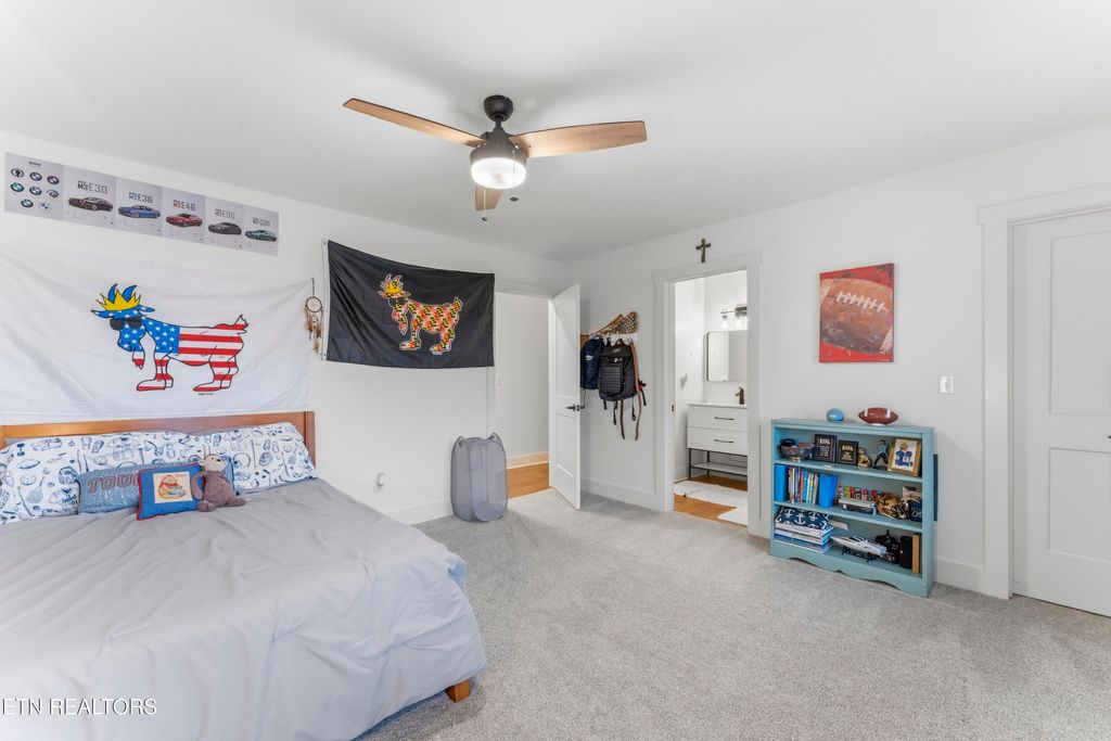 Welcome to this stunning all-brick residence tucked away in a quiet cul-de-sac in the prestigious Wexford at Lake Loudon community of West Knoxville. Fully reimagined, this beautifully renovated home blends timeless elegance with modern luxury, offering an exceptional lifestyle of comfort, warmth, and sophistication. The main level is designed for both everyday living and effortless entertaining, featuring a cozy living room anchored by a gas log fireplace that flows seamlessly into the heart of the home -- a true custom kitchen. This show-stopping space boasts an oversized island, quartz countertops, gas range, premium appliances, and a highly desirable butler's pantry (also known as a ''dirty kitchen'') for added prep and storage. The adjacent breakfast nook includes charming built-in bench seating, creating the perfect spot for morning coffee or casual meals with family. A recently renovated half bath completes the main level as well as an office for added convenience. Upstairs, all 5 carpeted bedrooms (or 4 with the option for a bonus room) are thoughtfully located for privacy and convenience, along with a beautifully remodeled laundry room offering abundant storage and a utility sink. The luxurious primary suite serves as a private retreat, featuring a spa-inspired bath with a glass-enclosed shower and freestanding soaking tub. The home offers spacious sized rooms with generous closet space, providing flexibility for family, guests, or any other needs. Step outside to a park-like backyard oasis designed for relaxation and entertaining. Enjoy the oversized screened-in porch for dining and lounging, a custom firepit area with electricity for evening gatherings, and a charming playhouse for kids. Once the spring arrives, the amazing professionally landscaped green grass perfectly frames this beautiful home, creating an inviting, turnkey exterior! This property is beautifully maintained and includes timed exterior nighttime lighting and timed irrigation system for easy upkeep. Additional highlights, just to name a few, include a spacious side-facing 3-car garage w/ new doors and an expansive parking pad accommodating additional vehicles, newly installed mud room with bench, cabinets & hooks for hanging items, plantation shutters throughout, stunning wallpaper in office and half bathroom downstairs and much much more! Residents of Wexford enjoy access to a community pool and an unbeatable location directly across from Cowan Park, 5 minutes to the interstate, shopping, dining, the lake, and miles of walking and biking trails -- this home perfectly balances convenience with peaceful suburban living. More than just a home, this is a carefully crafted renovation offering move-in-ready luxury in one of West Knoxville's most desirable neighborhoods. A truly rare opportunity -- you do not want to miss this stunning home!