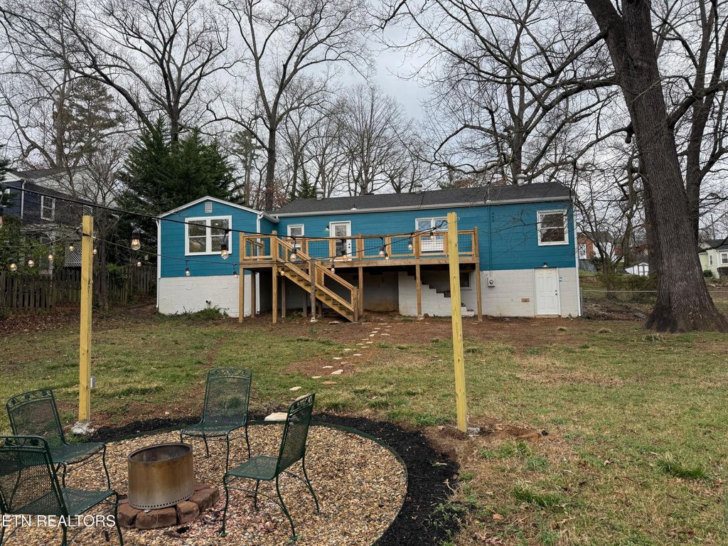 Outdoor living is enhanced with a new deck and fire pit area, along with practical upgrades including a new driveway line drain, front yard French drain, and new gutter system.