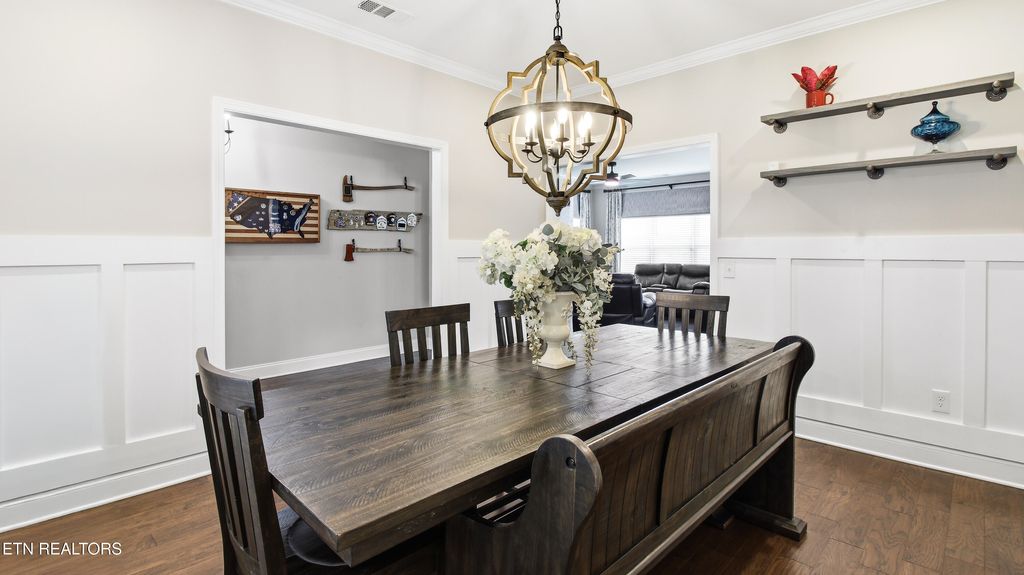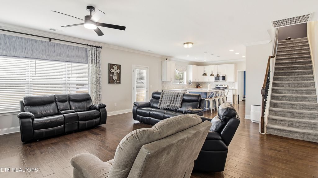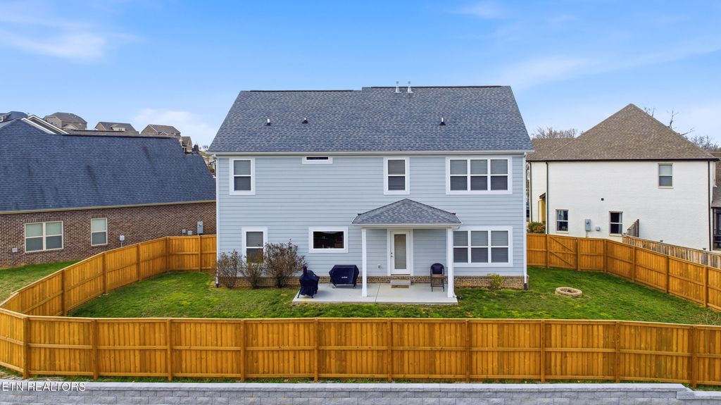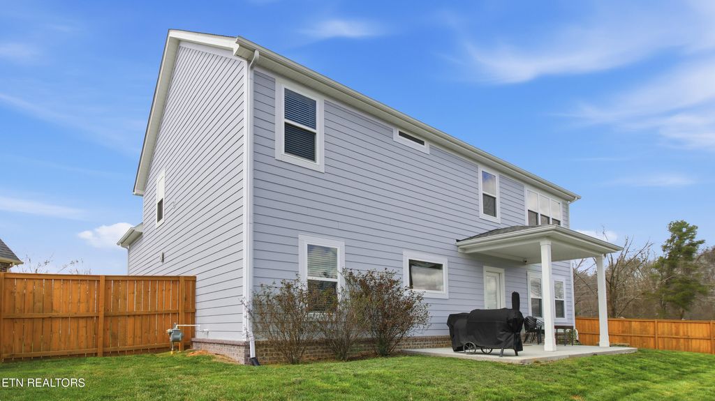 This beautiful home features a charming Hardie board exterior and sits on a quiet cul-de-sac just steps from the neighborhood pool. Inside, the open-concept layout showcases a stunning Craftsman-style design with a chef's kitchen featuring granite countertops, a large island, white cabinetry, Frigidaire stainless steel appliances, engineered hardwood floors, and a custom pantry for added storage. The versatile mudroom can easily double as a home office, adding extra functionality. Upstairs, the spacious primary suite offers a peaceful retreat with a private bath and walk-in closet, while the bonus room provides the flexibility of a fifth bedroom if needed. Step outside to enjoy the covered rear patio and fully fenced backyard. Originally designed with minimal yard space, the seller invested $40,000 to transform the outdoor area by building a substantial retaining wall and creating a much larger, usable backyard. Move-in ready and located in a prime area of one of Hardin Valley's most desirable neighborhoods - schedule your tour today.