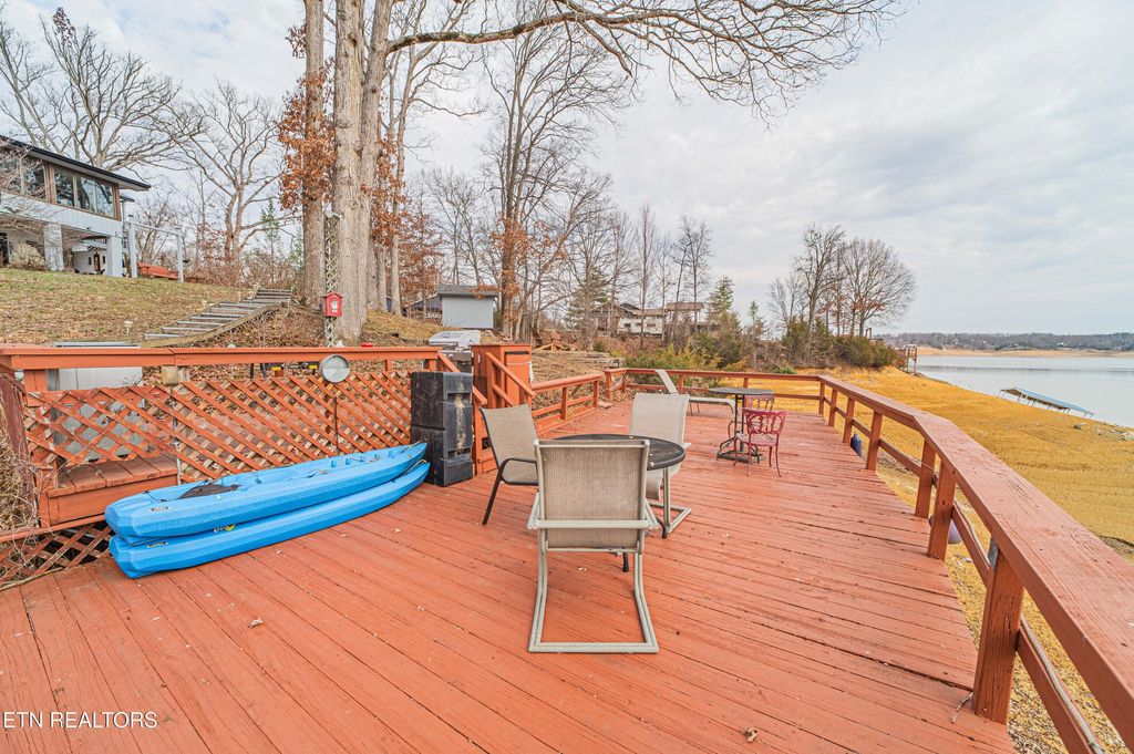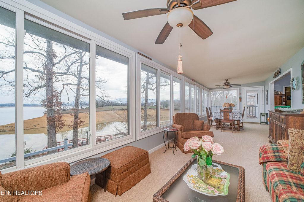 The walk-out basement is designed for utility and entertainment, featuring a large den, kitchenette, full bath, and a dedicated workshop/craft room with ample storage. Outside, the covered porch includes an outdoor shower for convenience after a day on the water. Additionally the property features a ''she-shed'' equipped with electricity and a spacious deck located directly at the water's edge. The sale includes two additional lots, providing significant privacy or future development potential. Mechanically sound and move-in ready with a brand-new roof and gutters, this is a unique opportunity to own a legacy lakefront estate with unmatched water access and privacy in the Knoxville area. Just minutes to downtown Dandridge by boat or car. Call today to schedule your private tour.