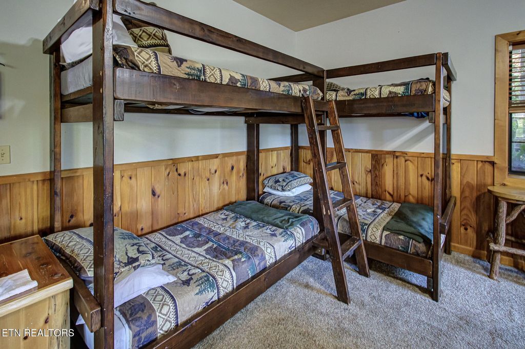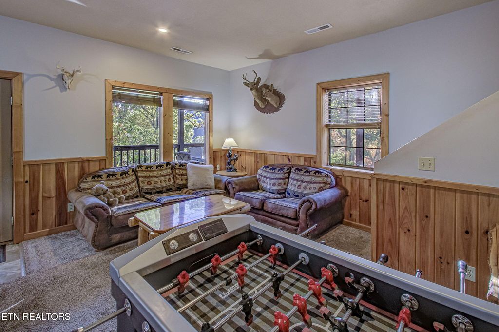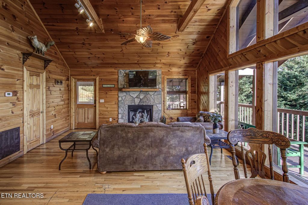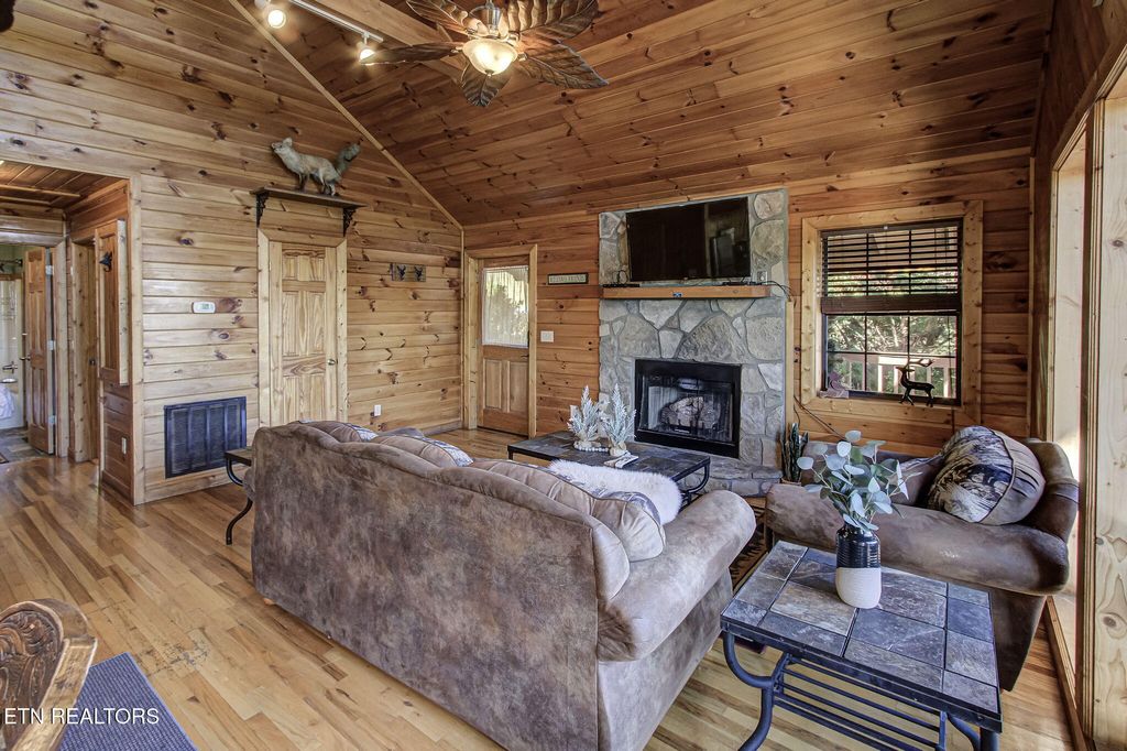 Welcome to Bear Cub Lodge, a stunning 3-bedroom, 3-bath log cabin ideally located in beautiful Wears Valley, just 15 minutes from The Island in Pigeon Forge and a short drive to Gatlinburg. This cabin offers the perfect balance of peaceful mountain living and convenient access to world-class attractions, dining, and entertainment. With an impressive 138 five-star reviews on Airbnb, Bear Cub Lodge has earned its reputation as a guest favorite--offering exceptional comfort, modern amenities, and unforgettable Smoky Mountain views. Inside, you'll find a spacious open layout featuring a warm living area with a stone fireplace, a fully equipped kitchen, and a dining space surrounded by windows showcasing breathtaking mountain scenery. The main level hosts two king bedrooms, including a primary suite with a private bath, while the lower level offers a third king bedroom and a large game room complete with a pool table, board games, and two bunk beds--perfect for extra guests or family fun. A sofa bed provides additional sleeping accommodations, comfortably hosting up to 12 guests. Step outside to enjoy multiple decks with serene mountain views, a relaxing hot tub, and a charcoal grill ideal for outdoor dining after a day of exploring the Smokies. Whether you're looking for a proven short-term rental investment or your own private mountain retreat, Bear Cub Lodge delivers the best of both worlds--tranquil surroundings, modern comfort, and unbeatable proximity to the heart of Pigeon Forge and the Great Smoky Mountains National Park.