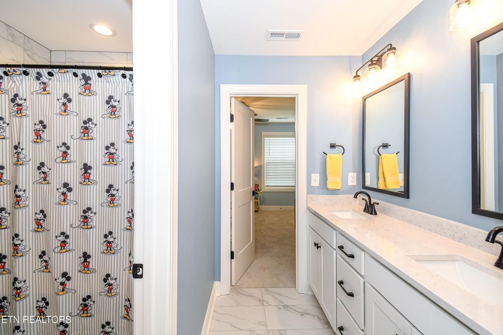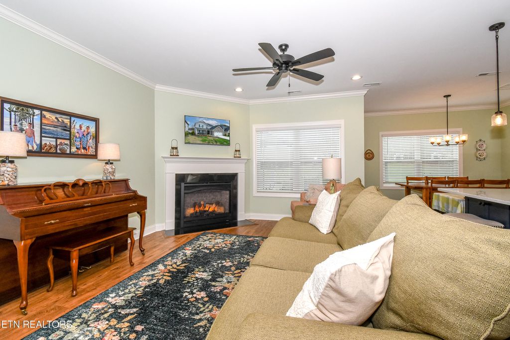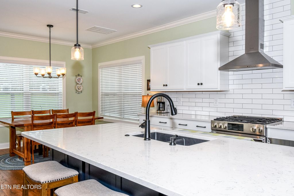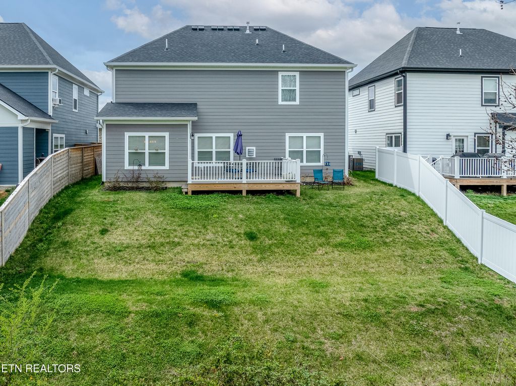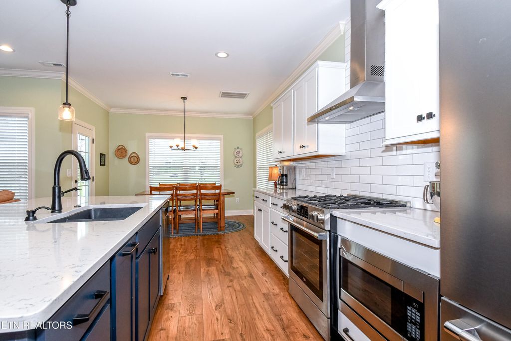 Welcome to this stunning two-level home in one of Blount County's hottest neighborhoods that is almost sold out! Better than new construction, this home features over $6,000 in fresh interior paint, wallpaper, and numerous thoughtful upgrades throughout. The open floor plan is designed for modern living, with the great room seamlessly connecting the kitchen, dining, and living areas--perfect for entertaining or relaxing with family. The chef's kitchen is stacked with granite countertops, a large island with bar top seating, stainless steel appliances, subway tile backsplash, stainless hood vent, built-in microwave, pantry, and abundant cabinet space. A convenient drop zone with cubbies and a laundry room on the main level add everyday functionality.