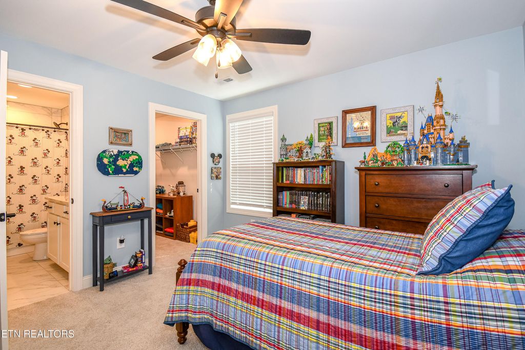 The spacious living room features a cozy gas fireplace and ceiling fan, while the main-level owner's suite offers a trey ceiling, ceiling fan, walk-in closet, and a luxurious bath with double vanities, tile flooring, tile walk-in shower, and linen closet. Upstairs you'll find three additional bedrooms and a versatile media or flex room. Two bedrooms share a Jack-and-Jill bathroom with double vanities, while the third bedroom enjoys its own private en suite--giving every bedroom direct access to a bathroom for ultimate comfort and privacy.
