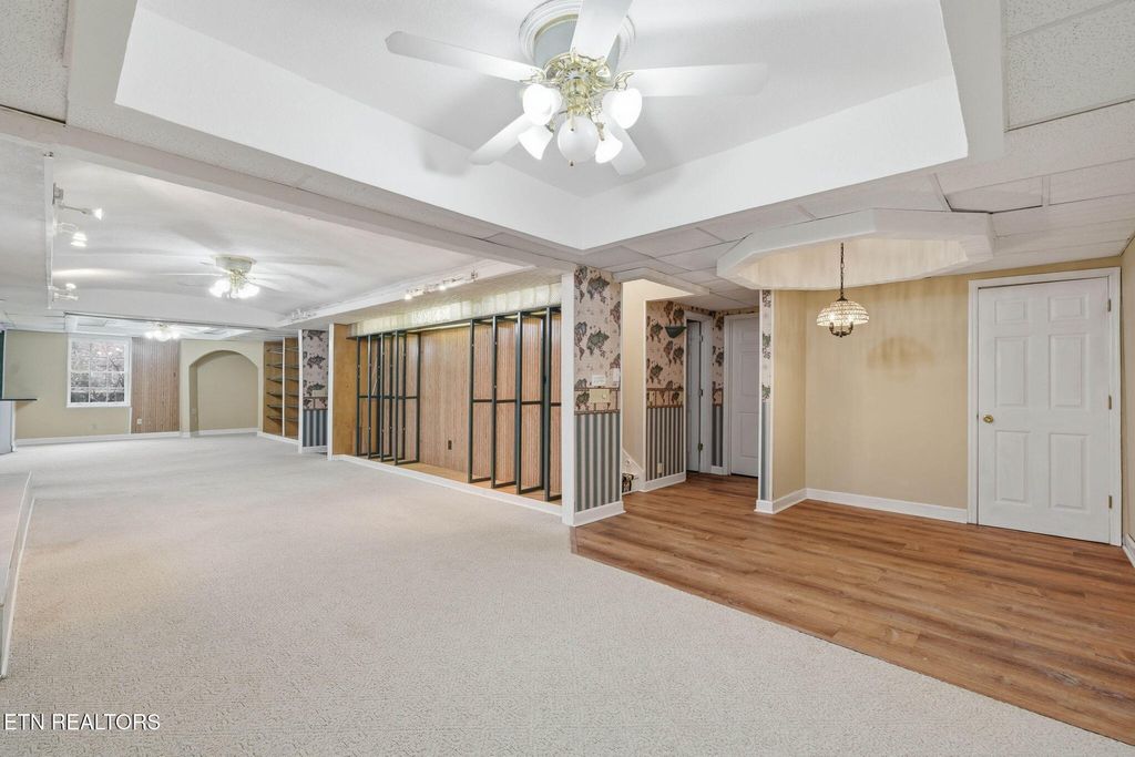room features a game area with recessed ceiling and game closet, built-in shelves and a niche for the big TV, a
