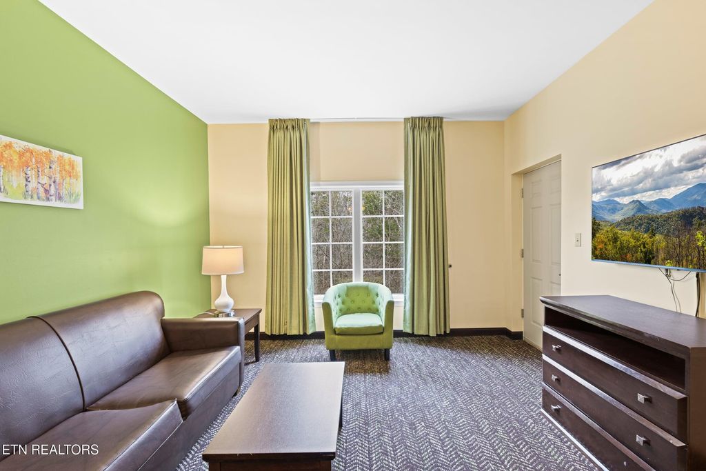 Discover this delightful 1-bedroom, 1-bath lifestyle condo in the highly sought-after Smoky Mountain area! Situated within The Resort at Governor's Crossing, this property offers unparalleled amenities, including an indoor and outdoor pool, water slide, lazy river, exercise room, and game room"”perfect for both relaxation and recreation. With shopping and dining just steps from your front door and the Great Smoky Mountains National Park only minutes away, this condo places you in the heart of it all. The spacious, open living and dining area flows seamlessly into a fully equipped kitchen featuring granite countertops and fine finishes. The private bedroom and in-unit laundry closet offer added convenience. Start your mornings on the private balcony with serene wooded views"”a peaceful retreat for coffee or evening relaxation. This prime lock-and-leave vacation condo presents a fantastic, low-maintenance investment opportunity with exceptional amenities for both you and your guests. Schedule your tour today and experience the best of Sevierville living! Buyer to verify all information.