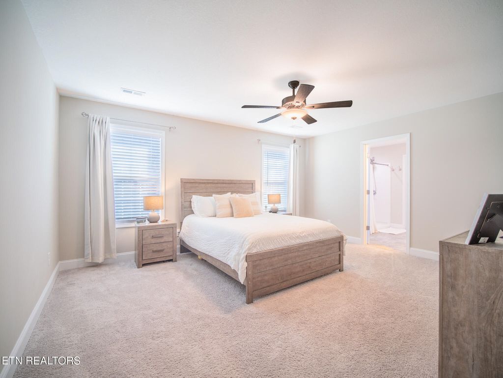 Welcome Home to this Light-Filled Lovely One! This beautifully maintained home is nestled in a quiet Knoxville neighborhood on a culdesac with convenient access to shopping, dining and ammenities. This inviting property offers a comfortable blend of space, functionality and charm making it ideal for everyday living or entertaining. The thoughtfully designed floor plan provides a generously sized Living Room with a Cozy Fireplace creating a warm and welcoming atmosphere. The Open Kitchen offers ample cabinetry, a pantry and workspace perfect for preparing meals and gathering with family and friends. Half Bath finishes off the Main. 2nd Level Owner's Ensuite is tucked away from the other bedrooms offering privacy making it a sweet retreat. Ensuite with Walk-in Shower and Double Vanity. Spacious Walk-in Closet for all the gameday wear. Bedroom 2 & Bedroom 3 share a Hall Bath with Tub/Shower Combo. Laundry Day is no big deal with the Laundry Room conveniently located on the 2nd Level. Step outside to the Back Patio for those