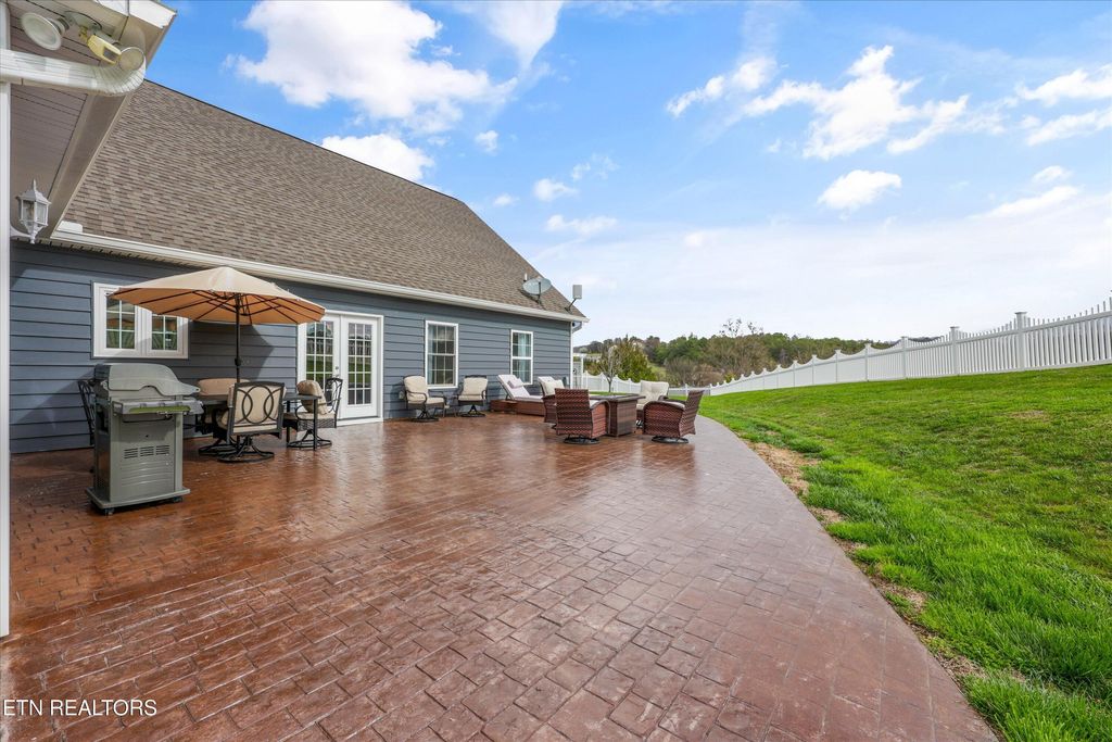 Step outside to the stamped concrete patio, creating the perfect setting for outdoor entertaining, grilling, or simply enjoying the surrounding scenery.