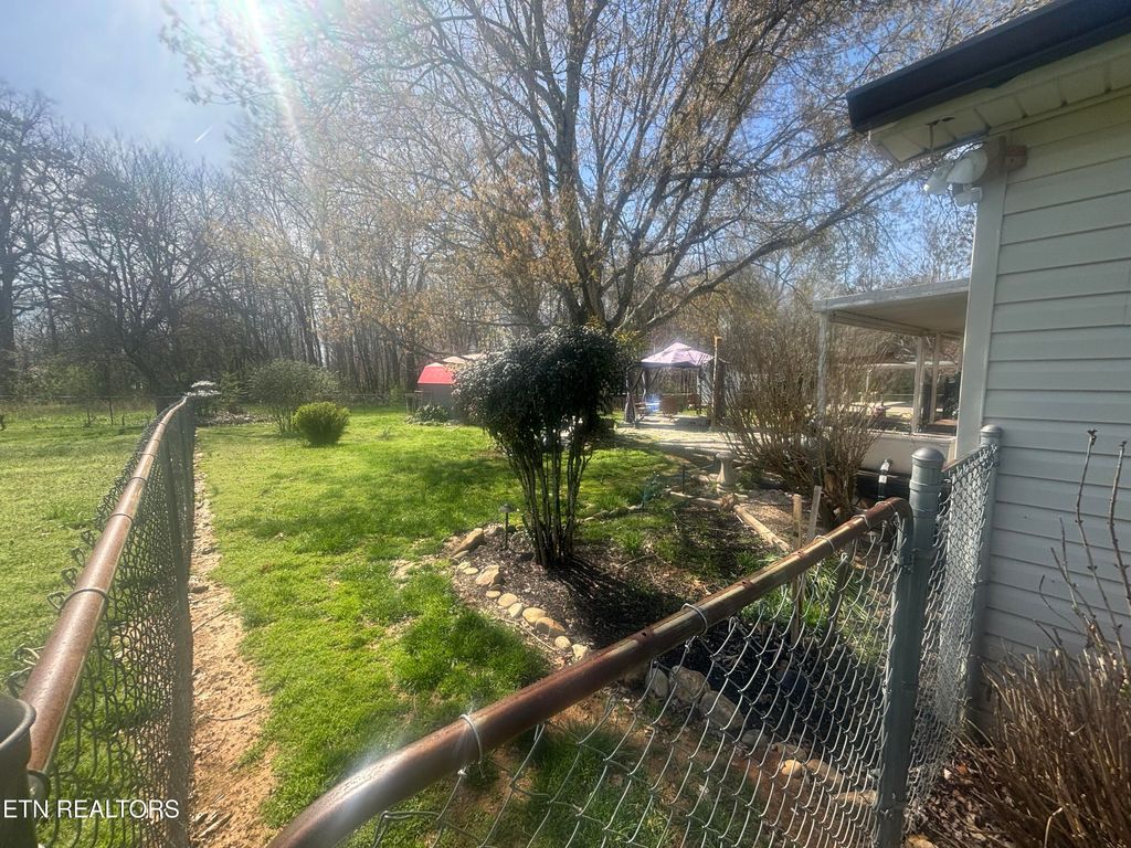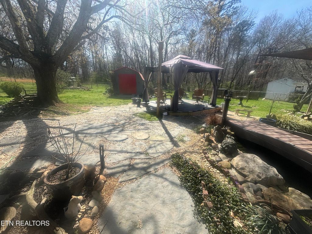 Spacious 3 bdrm 2 bath home with an oversized one car garage situated on a half-acre level lot! Nice open floor plan with a beautiful, updated kitchen updated cabinets & counter tops. Lots of nice cabinetry & large island with extra storage. Updated hall bathroom. Utility room off of the garage, separate laundry area. Large master bedroom with garden tub. Huge walk-in closet. Nice covered back porch overlooking a beautiful, stocked Koi pond! fenced back yard with storage building. Some new flooring and some rooms freshly painted. Stainless refrigerator does not convey but will be replaced. New water heater. HVAC was serviced in February 2026. Electric free-standing fireplace to remain. New garage door.