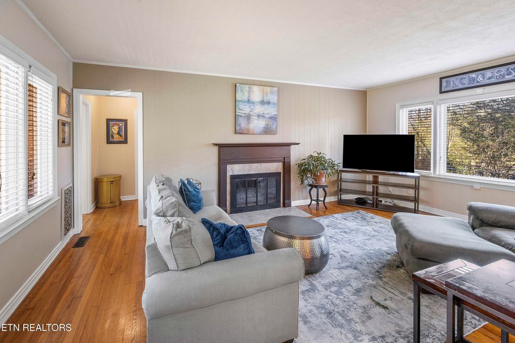 Charming all-brick ranch located near the scenic North Hills Dogwood Trail in Woodland Terrace neighborhood. This inviting home offers 2 bedrooms, 1.5 baths, and a flexible bonus area ideal for a home office, hobby room, or additional living space. An oversized covered front porch provides the perfect place to relax and enjoy the surroundings. The property features mature landscaping, a spacious patio ideal for entertaining, beautiful trees, and a level, fenced backyard that adds to the home's charm and character. Inside, the large living room is filled with natural light from numerous windows and features a cozy gas fireplace. The kitchen offers an abundance of cabinetry and includes a dining area, with the kitchen sink perfectly positioned to overlook the backyard. Hardwood and tile flooring run throughout the home, and the garage provides excellent storage or parking convenience. Newer roof in 2019 (including the porch roof and front porch tile), front windows replaced in 2024, and new water lines installed in 2020--including the main line from the street to the home, along with updated interior and exterior faucets and garage door opener, One-year 2-10 Home Buyers Warranty offered at closing. Buyer to verify sqft and all info.