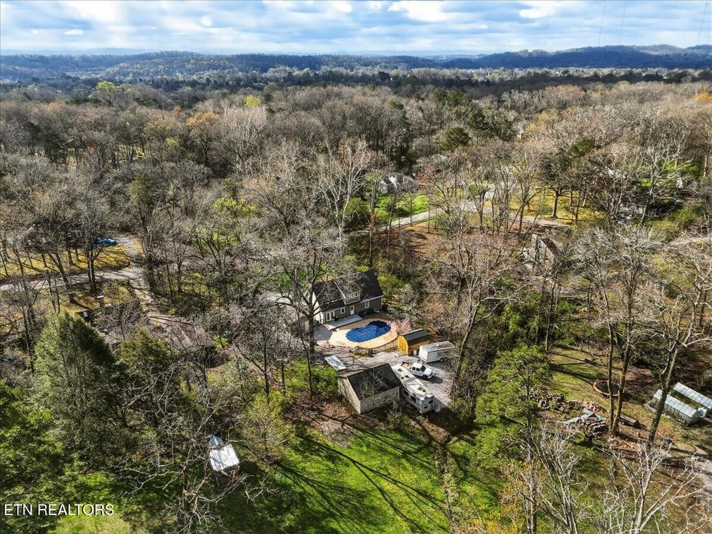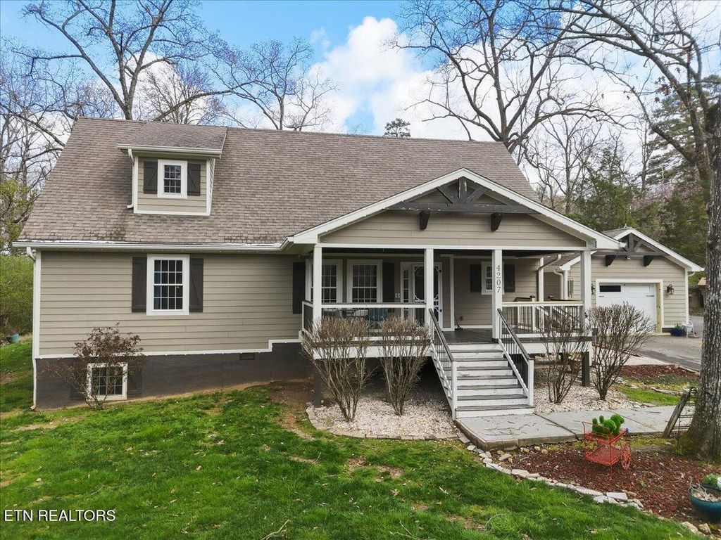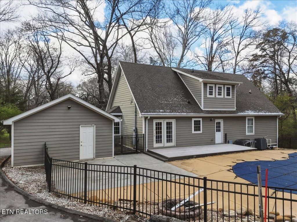 Enjoy quiet mornings and relaxing evenings on the beautiful covered front porch that adds warmth and curb appeal. Step outside to your private garden oasis where beautifully landscaped grounds, natural stone hardscaping, a retaining wall, and a cozy fire pit surround a sparkling saltwater pool and inviting outdoor entertaining area -- creating the perfect setting for gatherings or peaceful evenings at home. Additional highlights include two garages offering ample parking and abundant space for storage, hobbies, or a workshop. Recent upgrades include a brand-new driveway (2025) and a new HVAC system and water heater installed in March 2026, providing peace of mind and modern efficiency. Perfectly located just minutes from downtown Knoxville, the University of Tennessee, and convenient access to the Smoky Mountains, this exceptional property offers the perfect blend of luxury, charm, and location.