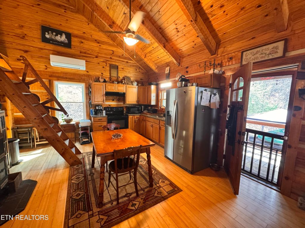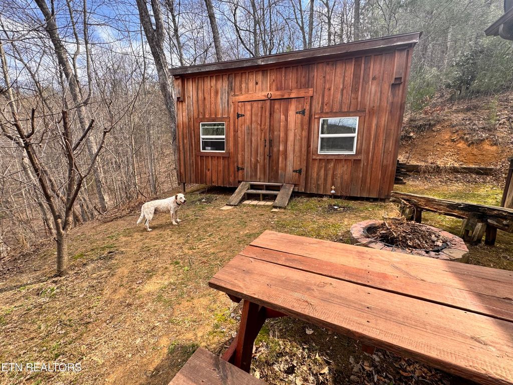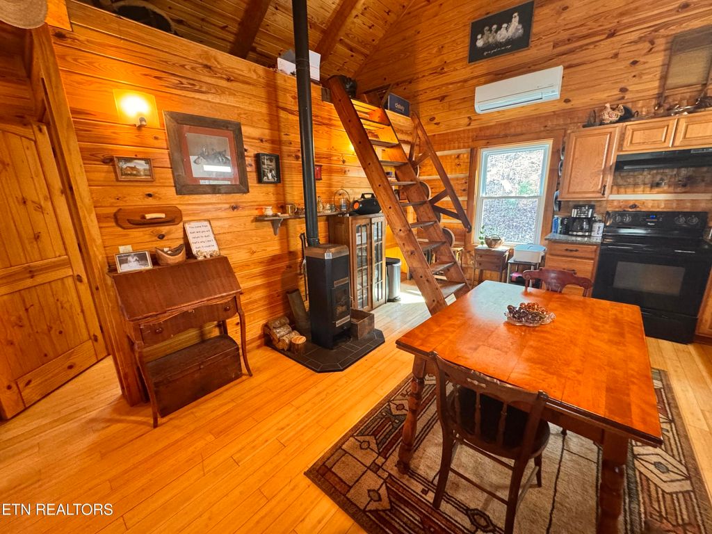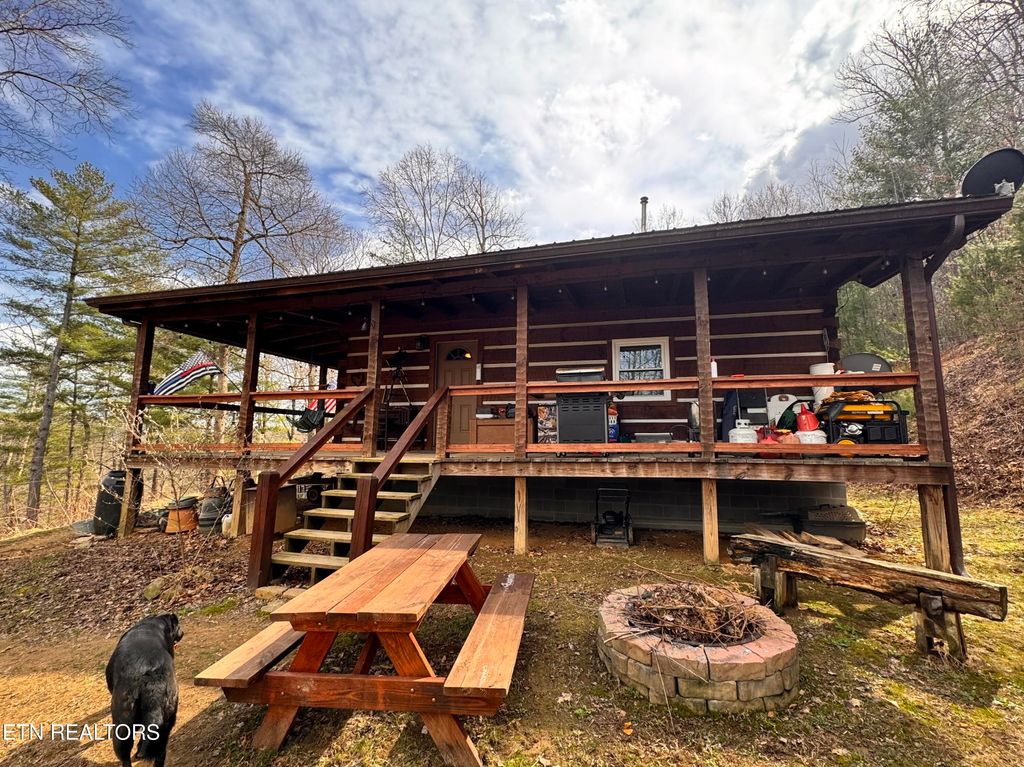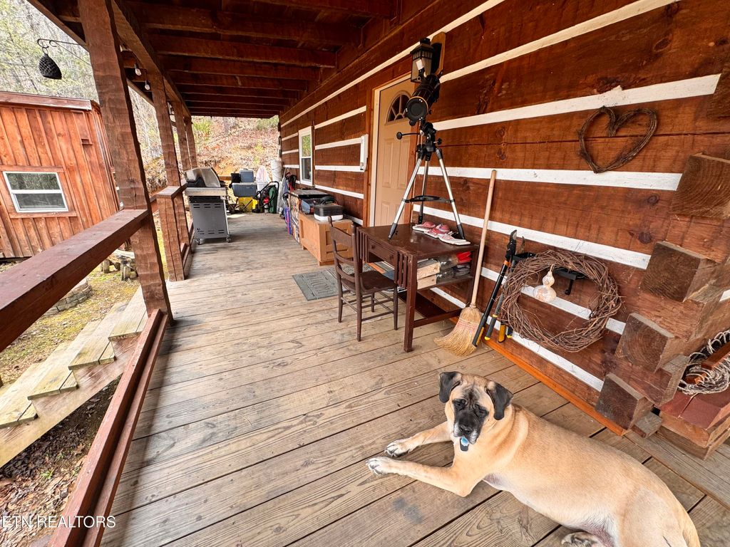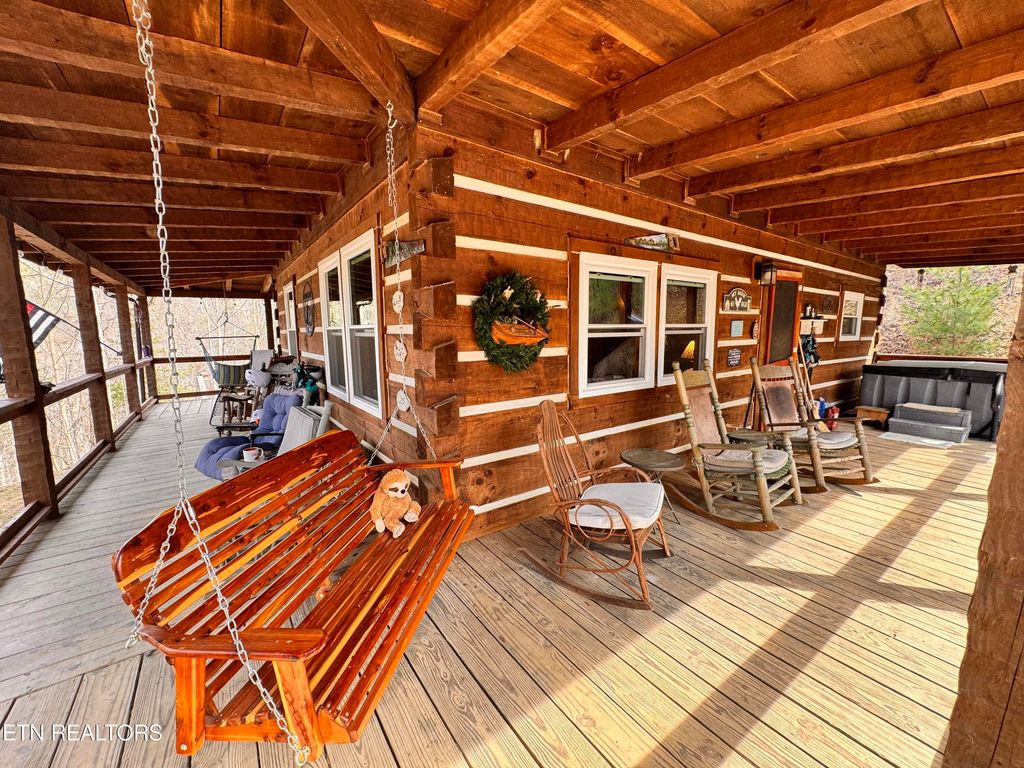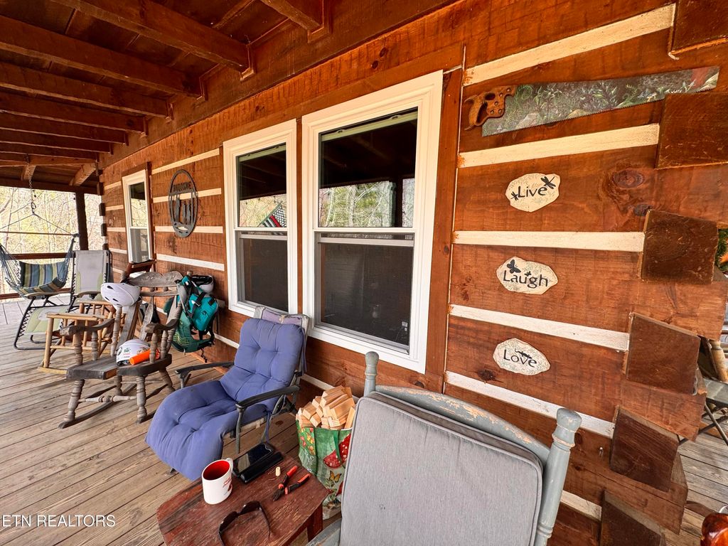 East TN Log Home nestled in the Appalachian Mountains with three sides of the property joining The Cherokee National Forest! Privacy and Tranquility abounds at this gated mountain retreat with beautiful mountain views and ''room to roam'' on 12.57 acres! Step inside this well built, green energy efficient Log Home into an open floor plan featuring 20' Cathedral ceilings throughout the home with beautiful tongue and groove ceilings and hand hued wooden beams! A loft overlooks the kitchen and dining area providing an area for additional storage with a custom crafted ladder for easy access. A warm and quaint 98% efficient wood burning stove adds comfort and ambiance to this TN mountain home while a 1.5 ton mini-split is available if needed. Home is wired with an automatic throw over switch should new homeowner choose to install solar panels. The kitchen features granite countertops, custom cabinetry, and nature views from every window! Sustainable bamboo flooring is throughout the home with tile flooring in the bathroom. New high efficiency windows were installed in 2025. Most of the furniture (excluding family room furniture) can remain including a massive bookcase which pivots to reveal a secret walk-in pantry! The great room is open to the kitchen/dining area and is positioned to take advantage of the gorgeous sunsets! With so much nature around, it beckons you to come outside and relax on the covered wrap around porch where you can sit back and enjoy the environment and the birds from the rocking chairs and porch swing or relax in the new (2024) 8 person hot tub tucked off to the side of the porch as you take in the most amazing sunsets East TN has to offer! The property has raised vegetable gardens, established perennial herbs, and an orchard which includes 6 apple trees, 3 blueberry bushes, 3 raspberry bushes, blackberry bushes, 10 grape vines, a fig tree, tart cherry tree, ever bearing strawberries, asparagus and 4 prize rose bushes are right off the front porch! Owner says the newer lawn mower can also remain and his tractor with box blade is negotiable. Out back, you will find a 14x20 workshop thoughtfully built with dimensional lumber for crafts and hobbies. This mountain home has a deep water well which the owner states is fantastic! The possibility exists for another home to be built on the property that would be located just up the hill from the existing home which has the most breathtaking mountain views! The POA annual dues provide maintenance for the private roads, ditches, and mowing throughout the year. Although you have the feeling of living ''off of the grid,'' you are just 15 minutes to the Hartford exit and another 5 minutes to Newport for shopping and dining. The Pigeon River and Big Creek are minutes from this property where you can take advantage of river rafting in the mountains! You are just minutes from the Appalachian Trail, Max Patch, and Hot Springs NC. You are less than an hour away from Dollywood, Pigeon Forge, Gatlinburg, and Douglas Lake for entertainment, shopping, and fine dining. Hunting is permissible in the Cherokee National Forest adjacent to this property. A large community pond is close by (not on this property) where the owner fishes and has caught large bass and bluegills. This mountain oasis awaits you! Come on Home to Tennessee! All information is deemed reliable; however, buyers and buyer's agents are advised to verify all information as it was gathered from public records and owner.
