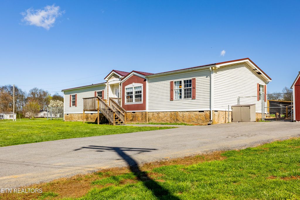 Beautiful 3BR/2BA home situated on a large corner lot offering both space and functionality. Inside, you'll find a spacious family room with a cozy fireplace, plus a separate living room that provides flexible living or entertaining options. The dining area flows nicely into the kitchen, creating a comfortable gathering space for everyday living. The primary suite features two walk-in closets and private bath complete with a relaxing garden tub. Outdoors, enjoy the fenced backyard with an above-ground pool and a 10x12 double-lofted barn storage building, perfect for additional storage or hobbies. Numerous updates include HVAC and water heater (2021), paved driveway and sidewalk (2021), storage building (2022), fencing (Fall 2022), and a back door ramp added in 2025. The roof is approximately 7 years old. Washer and dryer (2021), range (2021), and refrigerator (2024) will convey with the home. Sellers have removed carpeting and are offering a $2,500 flooring allowance at closing. Septic system has been updated for a 3-bedroom home.