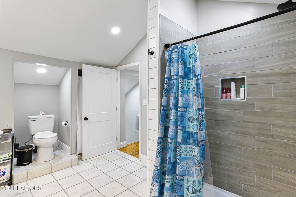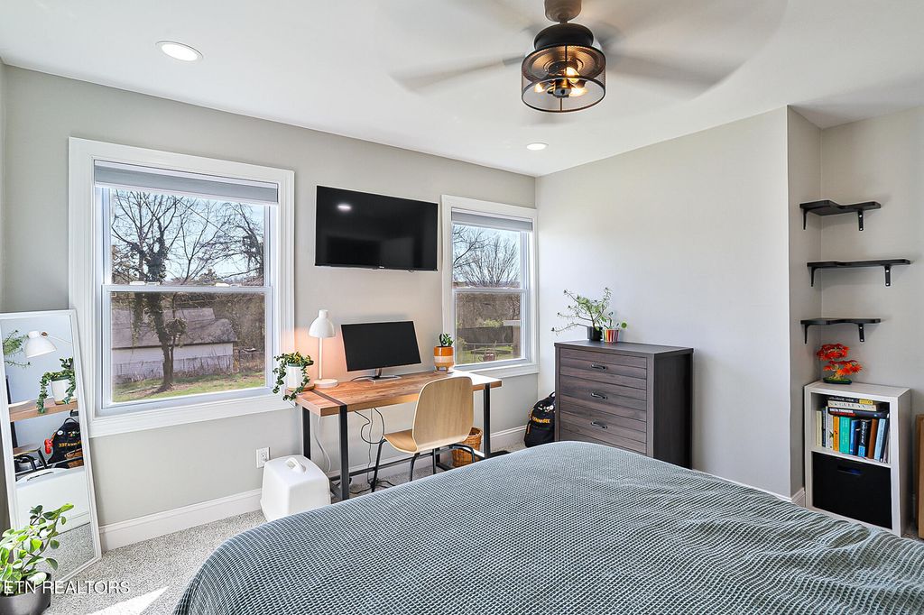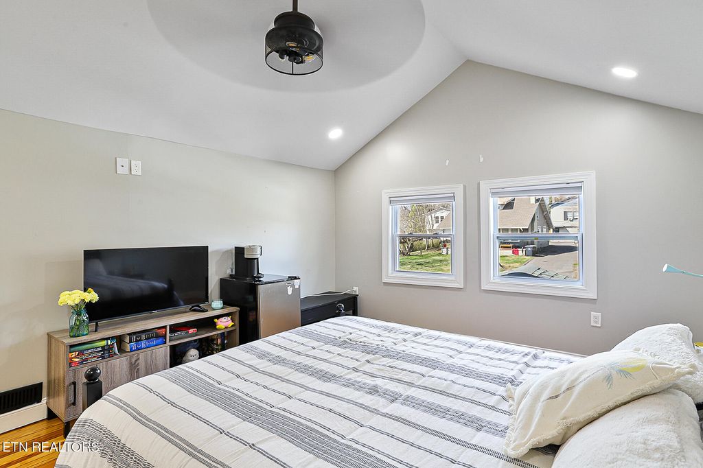 Move-In Ready Craftsman Home in the heart of Fountain City. This home offers a spacious interior with ample storage and a large, fenced-in yard. Inside, there are three bedrooms & two full baths. On the main level is an updated kitchen with a pantry, a formal dining area, and a cozy living room with lots of natural light, two bedrooms, a full bath (tub/shower combo), and a laundry area. Upstairs is its own private suite with a vaulted-ceiling bedroom, a walk-in closet, and a huge full bath with a walk-in shower.