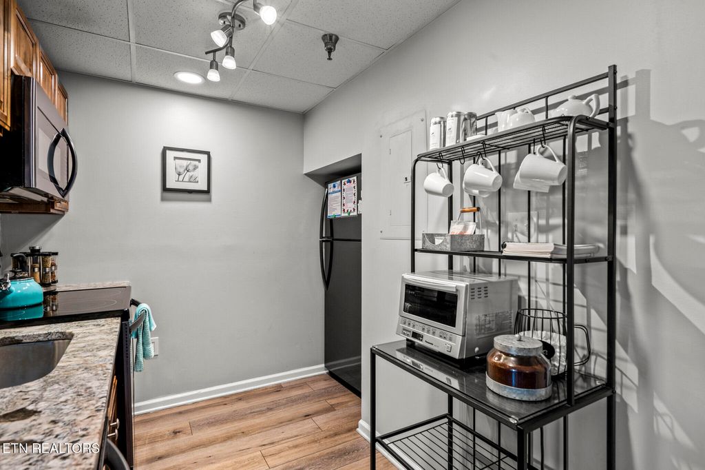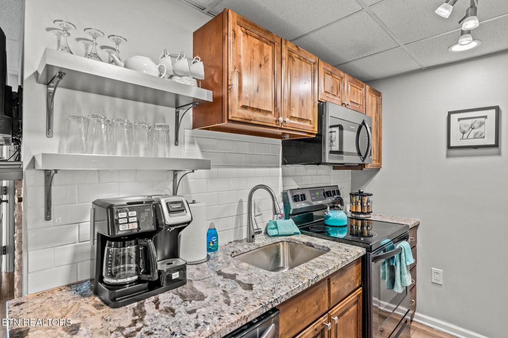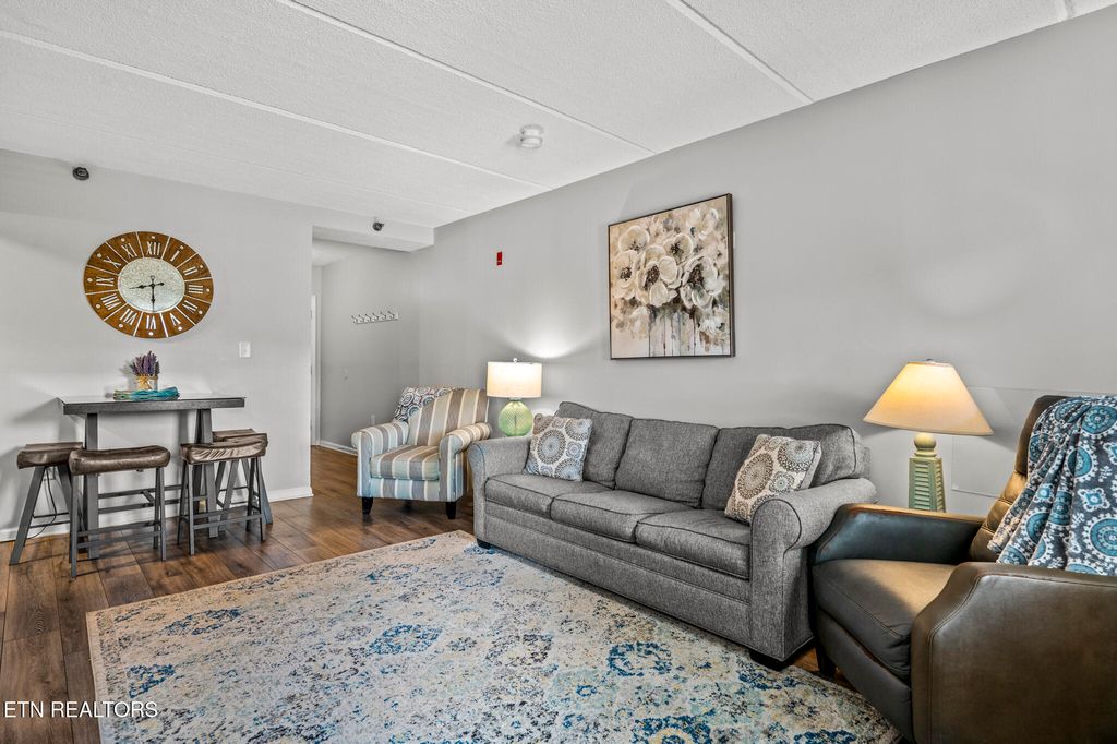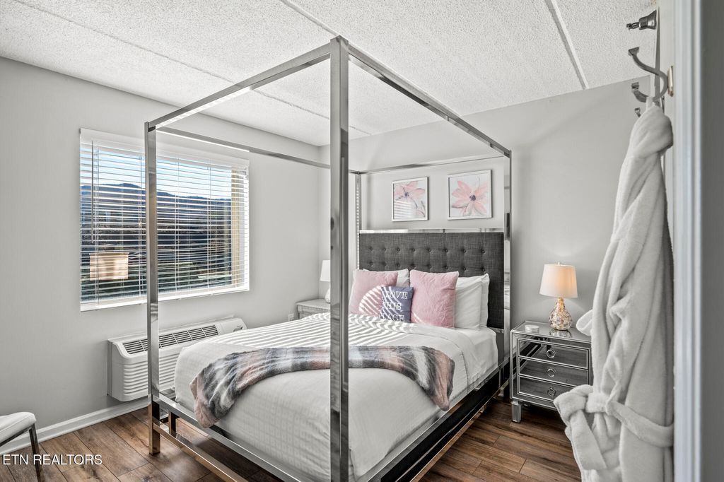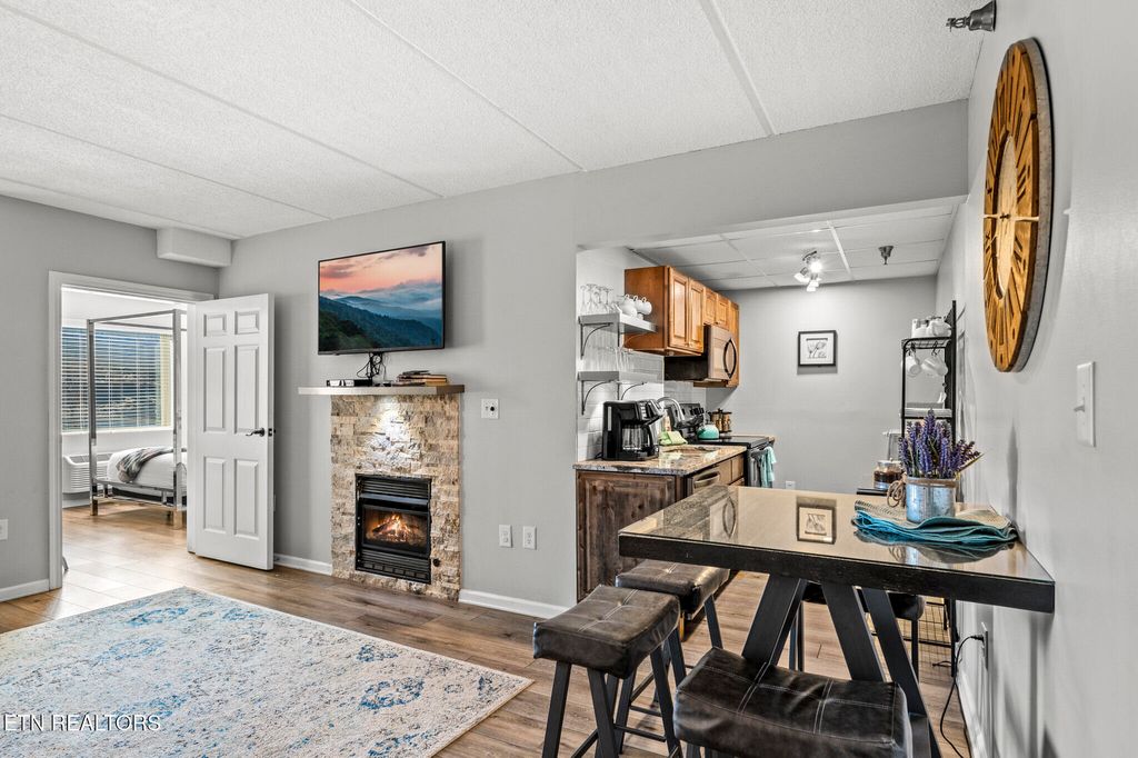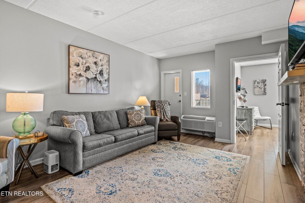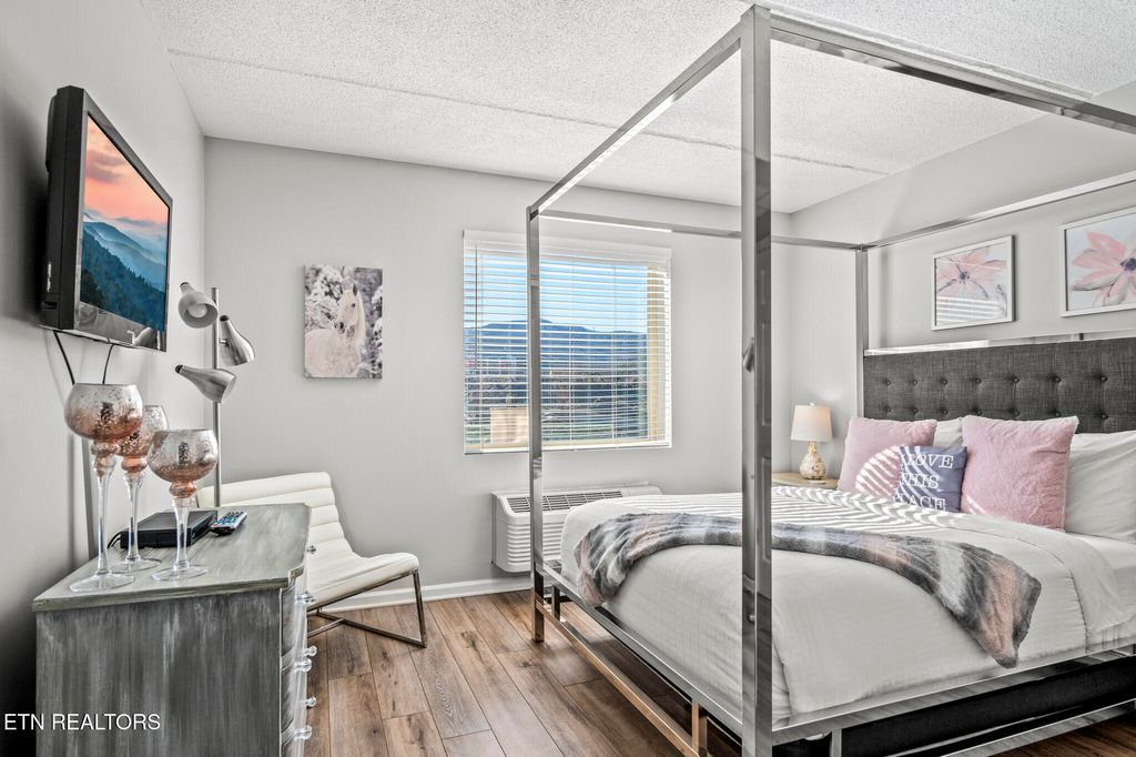 GREAT LOCATION IN DOWNTOWN GATLINBURG! This 2 Bedroom, 2 Bathroom Condo is Perfectly Situated in the Heart of Gatlinburg. It is Within Walking distance to Restaurants, Attractions, Shopping, and More! The Owner has made over $60K in Renovations and Updates, Including Complete Remodels of both Bathrooms and the Kitchen. New Cabinets and Granite Countertops in both Bathrooms and Kitchen. New Fireplace with Stacked Stone and Custom Chrome Mantle with Underlighting. Matching Custom Chrome Shelving in the Kitchen. New Flooring throughout. Replaced a 3 AC Units. New water heater. New lighting, Updated Furniture with Chrome canopy bed, all new appliances and hardware, located on the 4th Floor with Gorgeous views from the balcony, Gross Income: $50K in 2022, $43K in 2023 (with multiple weeks of personal use), $45K in 2024 (with multiple weeks of owner use). Won't Last long! SCHEDULE AN APPOINTMENT TO SEE ALL THIS CONDO HAS TO OFFER!