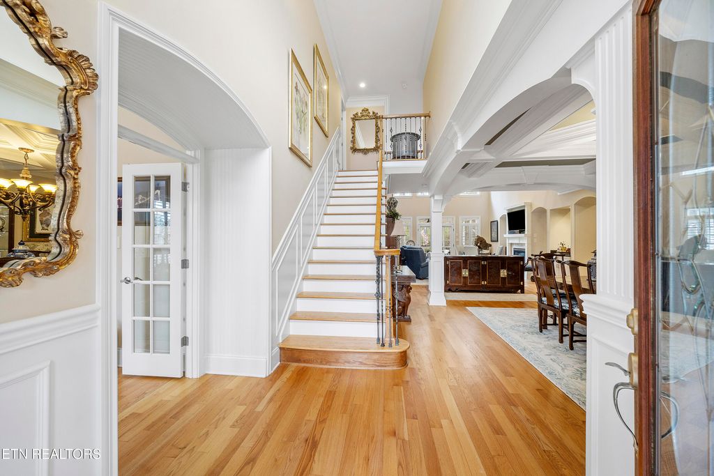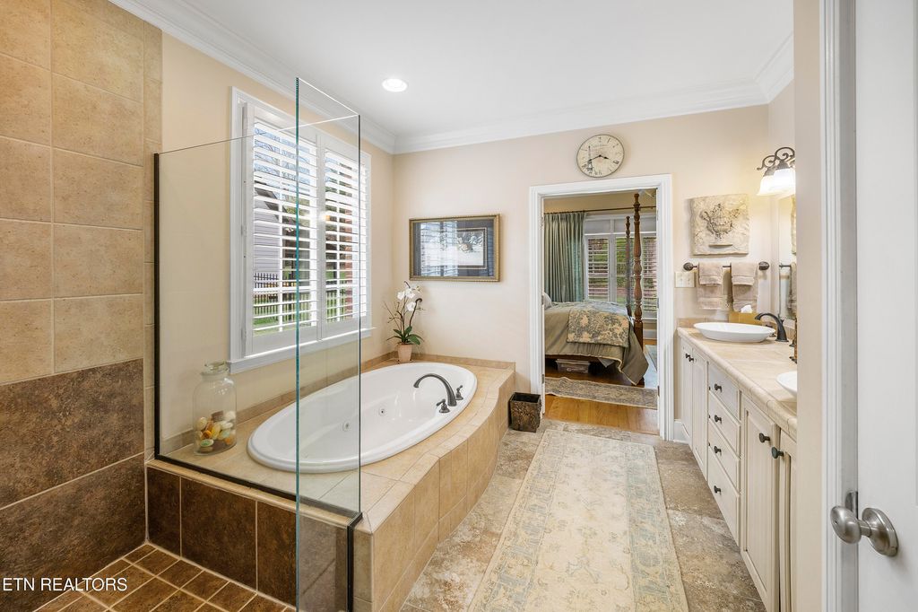 Beautiful 4 Bedroom 4-1/2 Bath Brick House in Berkeley Park with Main Level Master Suite and large 2nd-Floor Bonus Room. The main level also features a Convenient Office, Powder Room, family-sized Dining Room, and a Living Room with extra-high ceilings, an abundance of windows, wet bar, and see-through fireplace. Fireplace looks through to Breakfast/Dining area attached to Kitchen. The Chef's Kitchen is equipped with an island with a gas cooktop, large efficient overhead fan, microwave, oven, warming drawer, and custom cooktop cover that provides extra serving space. Off the Kitchen are a large Pantry/Utility room and door to the 3-Car Garage. Upstairs are 3 En Suite Bedrooms and a large Bonus Room with access to one the Baths. A door from the second level leads to a stairway to additional Attic Storage. A large Screened-In Porch and Open Deck overlook a Fenced Backyard perfect for children and pets. All windows throughout house have either plantation shutters or remote control blinds. This house is in prestigious Berkeley Park in the heart of Farragut with beautiful entrance, sidewalks, clubhouse and swimming pool, access to greenway, and HOA provided lawn mowing and trash service. Easy access to I-40/I-75, Turkey Creek shopping, great dining, golf courses and Topgolf, highly rated schools, library, beautiful parks and athletic fields. Convenient access to multiple medical care facilities. Farragut is approximately 30 minutes to the University of Tennessee, downtown Knoxville, Oak Ridge, and McGhee Tyson airport.