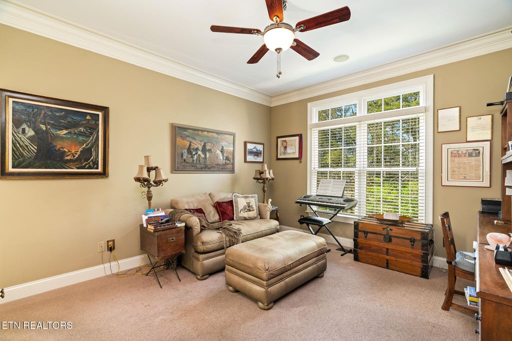 Beautiful Gettysvue home near the clubhouse, meticulously maintained and thoughtfully designed. A grand entry and vaulted great room create a bright, airy feel at the heart of the home, with custom details throughout. The spacious main level offers an office or sitting room, along with a bedroom and full bath. The kitchen is designed for gathering, featuring an open layout, bar area, and easy flow into the formal dining room.