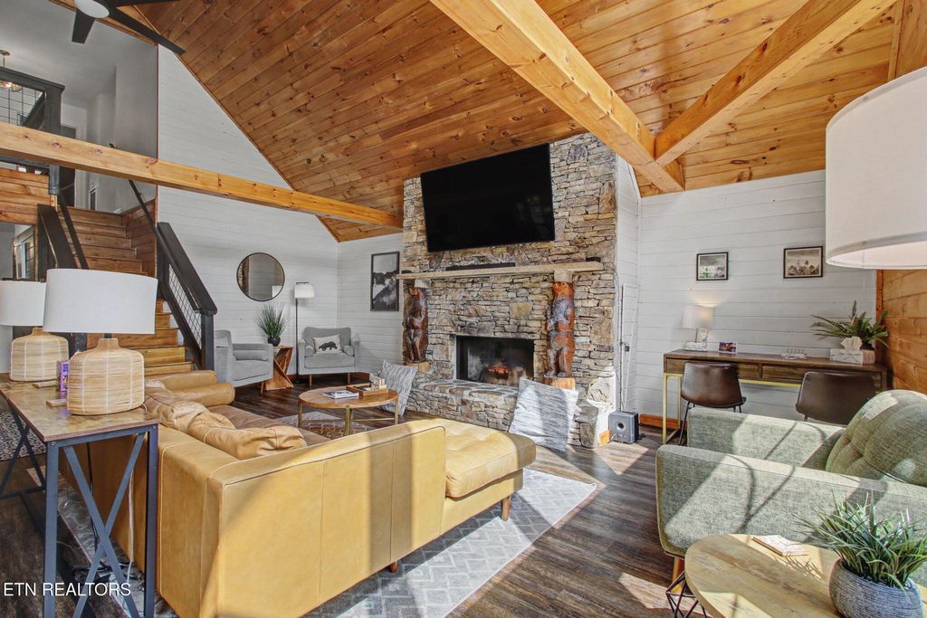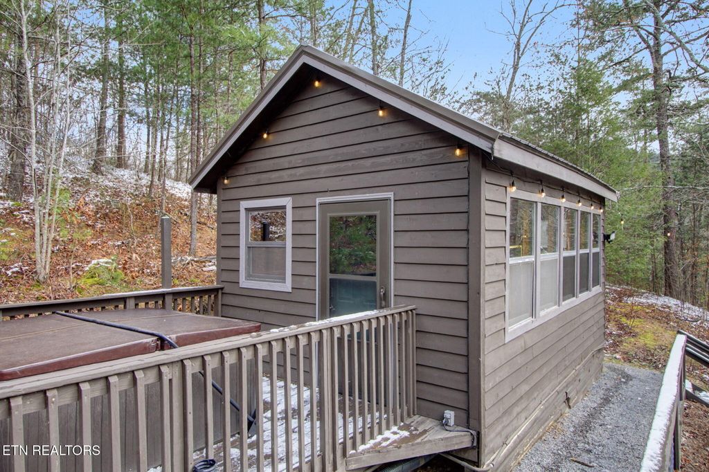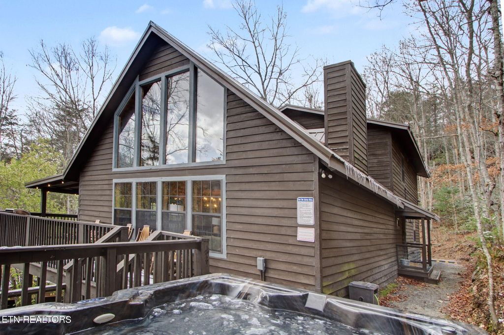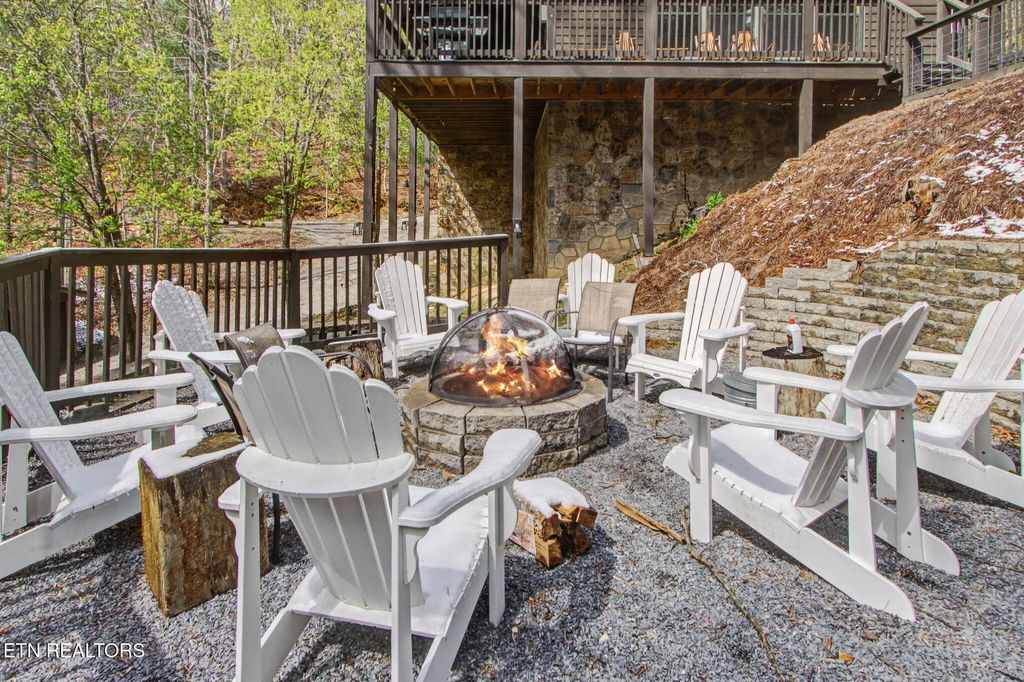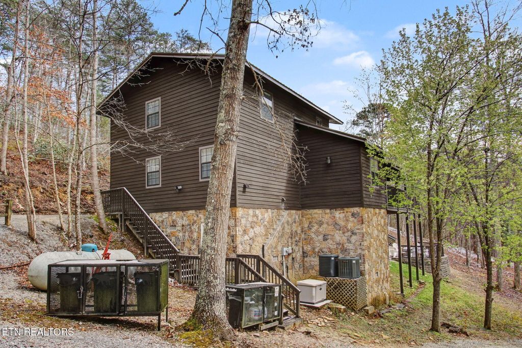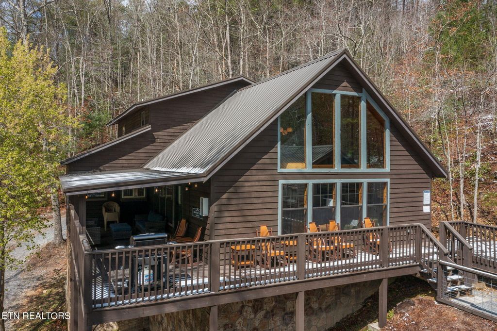 Nestled on a private, wooded lot of over an acre, this Smoky Mountain cabin offers the ultimate blend of seclusion, comfort, and proven investment potential--all just 10 minutes from the entrance to Great Smoky Mountains National Park and approximately 20 minutes to Pigeon Forge and Townsend. With no visible neighboring cabins, you'll truly feel immersed in the peace and beauty of the mountains. Designed for gathering and entertaining, the outdoor space features a newly installed paver fire pit area with seating for eight--perfect for relaxing evenings under the stars. Inside, the spacious open-concept living area offers plenty of room to unwind, complete with an electric fireplace and a 75'' TV mounted above the mantle. The fully equipped kitchen is thoughtfully designed with stainless steel appliances, quartz countertops, tile backsplash, pantry, gas stove, coffee center, and a bar-top for extra seating, making it ideal for hosting family and guests. The cabin offers multiple sleeping areas to comfortably accommodate larger groups, with three sleeping spaces upstairs--including two king beds and a unique ''kiddie theater''--and two additional sleeping areas downstairs, featuring a bedroom with double beds and another with a queen bed. A detached game room provides endless entertainment with air hockey, foosball, arcade games, and a karaoke setup. Additional upgrades include new luxury vinyl plank flooring throughout, a fully encapsulated crawl space, a newly fracked well and new pump system (2023) along with an added water monitoring devise and water storage tanks, water softening system, as well as a propane-powered backup generator for added peace of mind. With strong rental performance--grossing $97,800 in 2024 and $98,840 in 2025--this property is a turnkey investment opportunity with an established rental history and excellent guest reviews. Whether you're looking for a high-performing short-term rental or a private mountain retreat, this cabin delivers on every level.