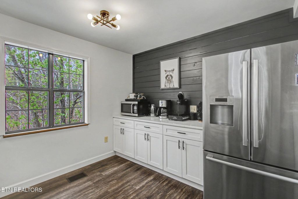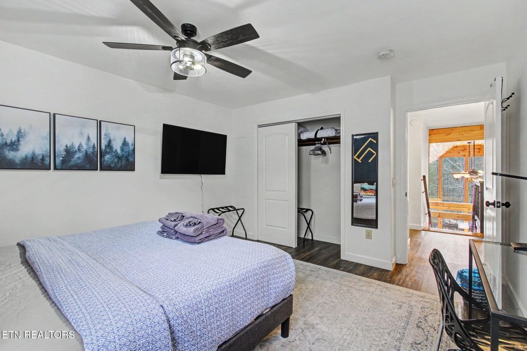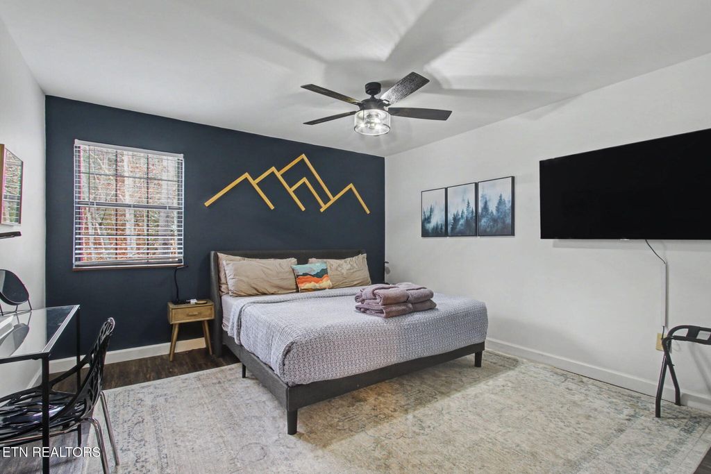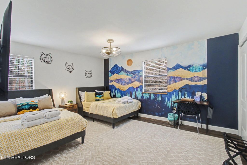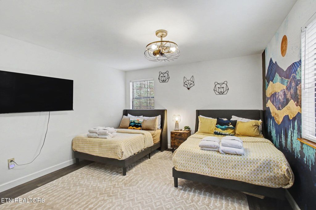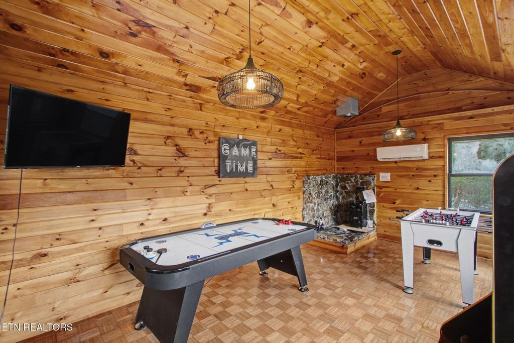 Nestled on a private, wooded lot of over an acre, this Smoky Mountain cabin offers the ultimate blend of seclusion, comfort, and proven investment potential--all just 10 minutes from the entrance to Great Smoky Mountains National Park and approximately 20 minutes to Pigeon Forge and Townsend. With no visible neighboring cabins, you'll truly feel immersed in the peace and beauty of the mountains. Designed for gathering and entertaining, the outdoor space features a newly installed paver fire pit area with seating for eight--perfect for relaxing evenings under the stars. Inside, the spacious open-concept living area offers plenty of room to unwind, complete with an electric fireplace and a 75'' TV mounted above the mantle. The fully equipped kitchen is thoughtfully designed with stainless steel appliances, quartz countertops, tile backsplash, pantry, gas stove, coffee center, and a bar-top for extra seating, making it ideal for hosting family and guests. The cabin offers multiple sleeping areas to comfortably accommodate larger groups, with three sleeping spaces upstairs--including two king beds and a unique ''kiddie theater''--and two additional sleeping areas downstairs, featuring a bedroom with double beds and another with a queen bed. A detached game room provides endless entertainment with air hockey, foosball, arcade games, and a karaoke setup. Additional upgrades include new luxury vinyl plank flooring throughout, a fully encapsulated crawl space, a newly fracked well and new pump system (2023) along with an added water monitoring devise and water storage tanks, water softening system, as well as a propane-powered backup generator for added peace of mind. With strong rental performance--grossing $97,800 in 2024 and $98,840 in 2025--this property is a turnkey investment opportunity with an established rental history and excellent guest reviews. Whether you're looking for a high-performing short-term rental or a private mountain retreat, this cabin delivers on every level.