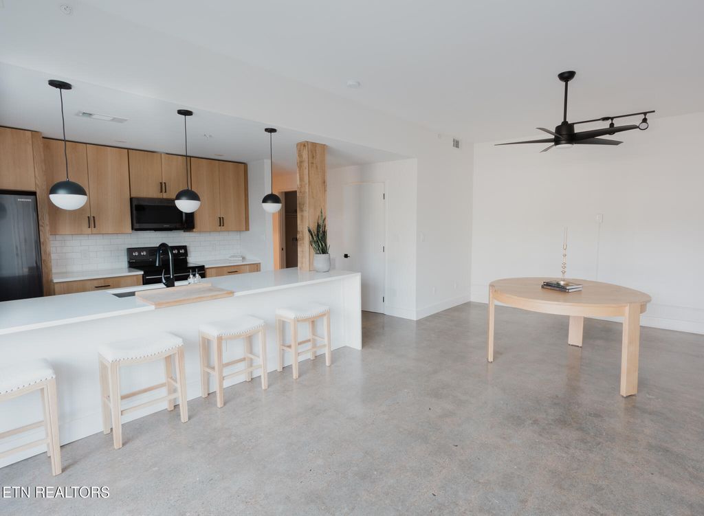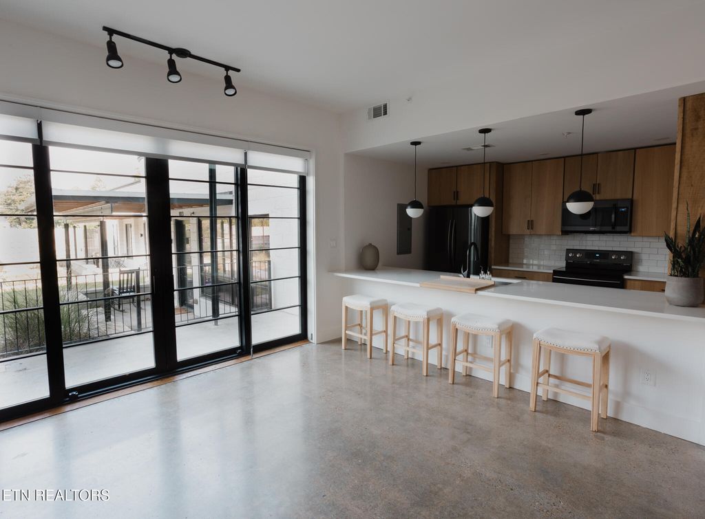 Features: Enjoy polished concrete floors throughout, loft-like ceilings, and a private patio that enhances your living space. The kitchen and bathroom showcase Quartz countertops with a waterfall edge, solid wood custom cabinetry, and stylish subway tile.