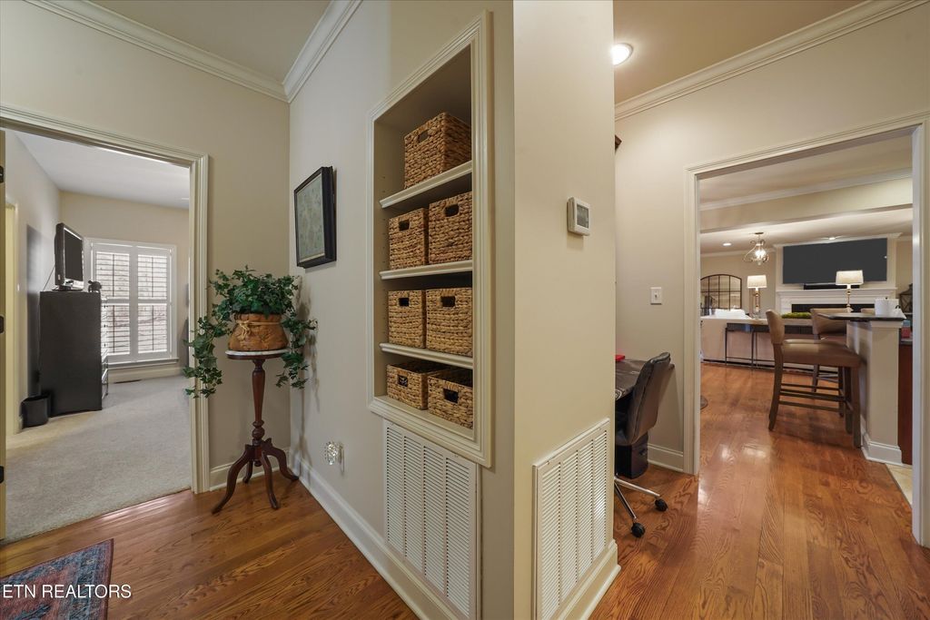 The home is thoughtfully designed with distinct areas for an office, workout room, guest accommodations, and spacious living areas. The large family room, centered around a cozy fireplace, seamlessly flows into the gourmet kitchen. With abundant cabinet and countertop space, plus a massive pantry, this kitchen is perfect for hosting family gatherings. Hardwood floors throughout enhance the warmth and ambiance of the home.