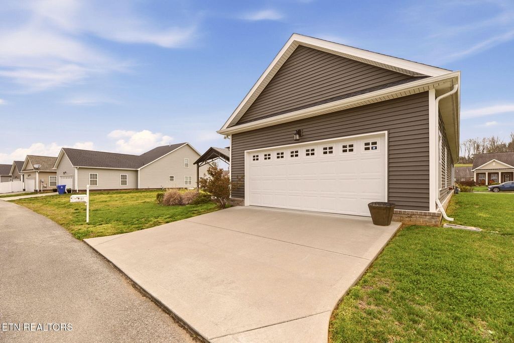 Wonderful opportunity for a one level home with low maintenance in a resort style community in E. TN that features state of the art amenities. This one level home has 3 bedrooms, 2 baths, large 2 car rear entry garage, great room offering spacious areas for activity, dining, creating meals and sharing with family and friends. The covered porch extends the living area. Neighborhood amenities include a zero entry ''beach style'' pool with water slide, playground, basketball court, pickleball court, tennis courts and more.