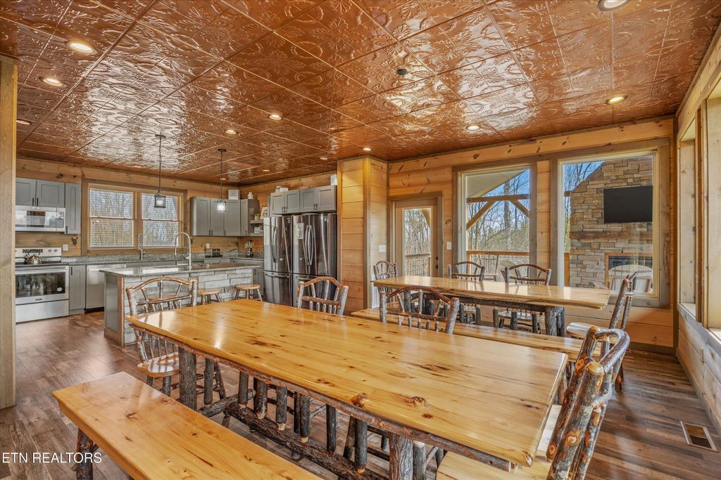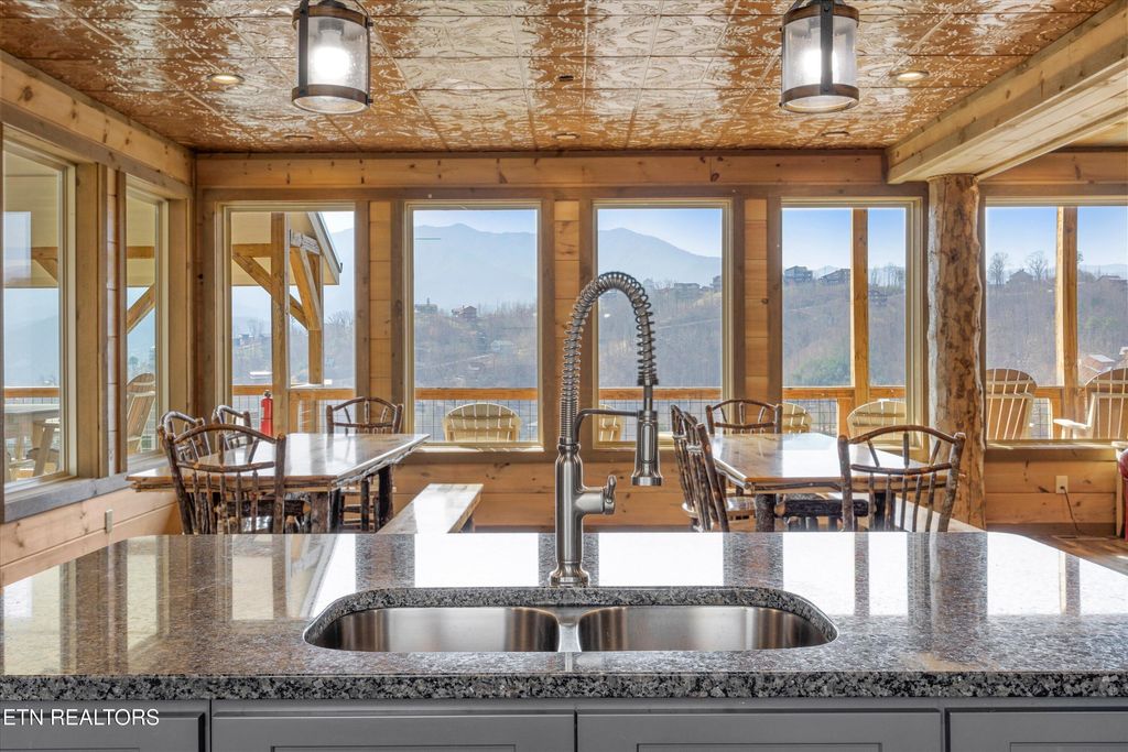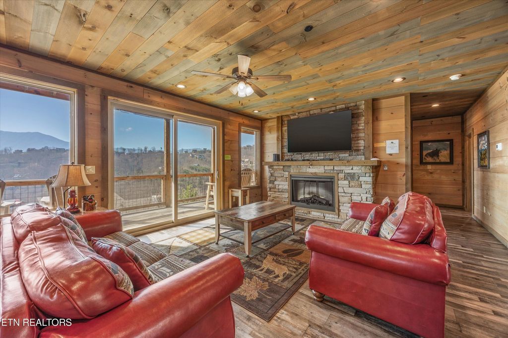 Enjoy the best of Smoky Mountain living with three spacious decks showcasing breathtaking long-range mountain views. Unwind by the outdoor stone wood-burning fireplace, relax under the stars in the outdoor hot tub, and take in the peaceful mountain setting -- perfect for gathering, entertaining, and creating unforgettable guest experiences.