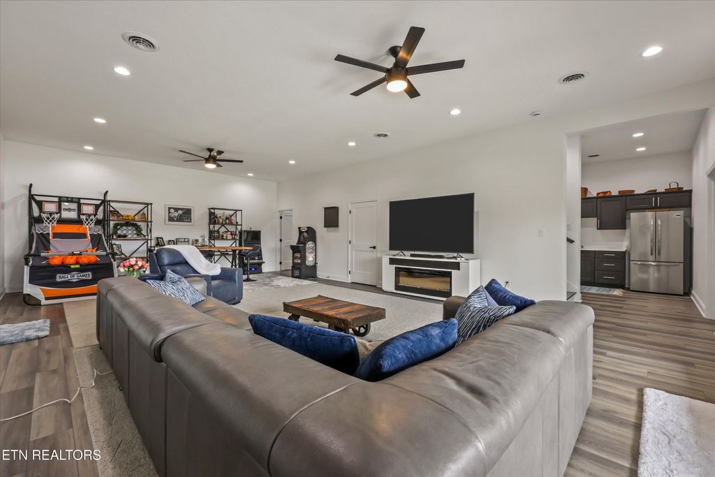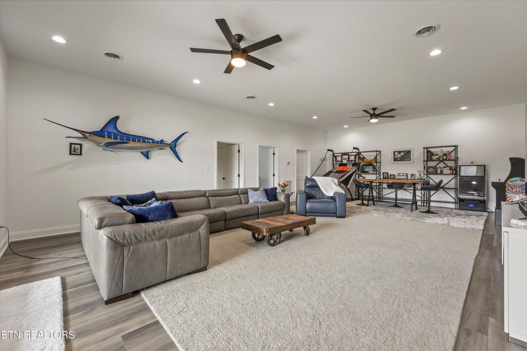 Finished in 2025 and tucked away at the end of a cul-de-sac, this stunning lakefront basement ranch offers a rare combination of setting and features. With approximately 4,400 sq ft, 3 bedrooms (+ 2 additional rooms), 5.5 bathrooms, and mountain views, this home is designed for both everyday comfort and unforgettable entertaining.