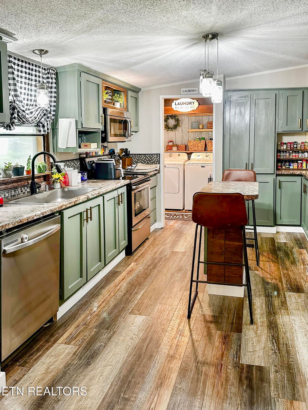 Dishwasher, Disposal, Dryer, Microwave, Range, Refrigerator, Washer |