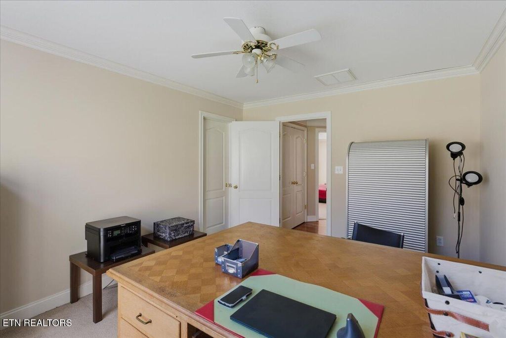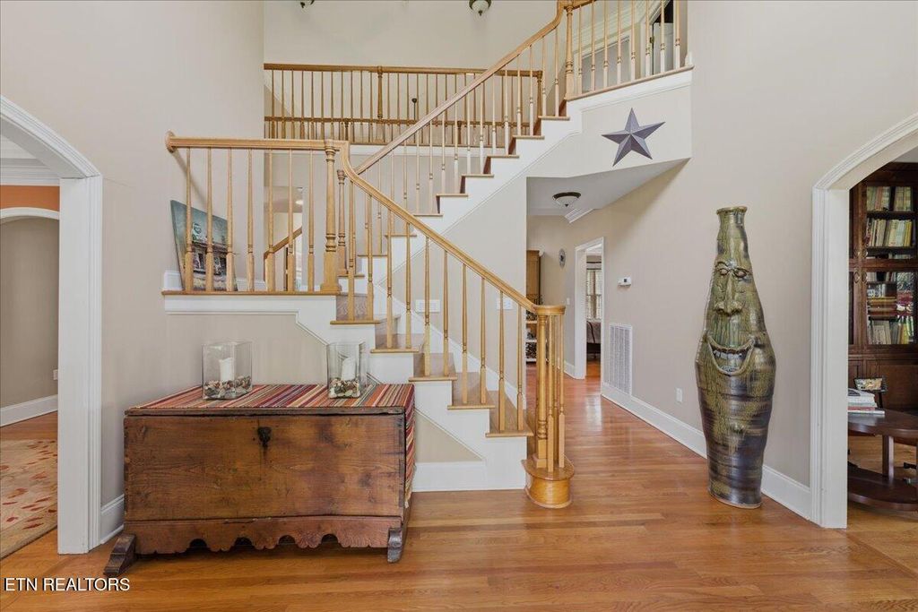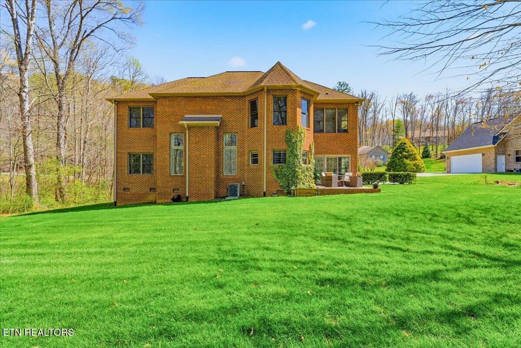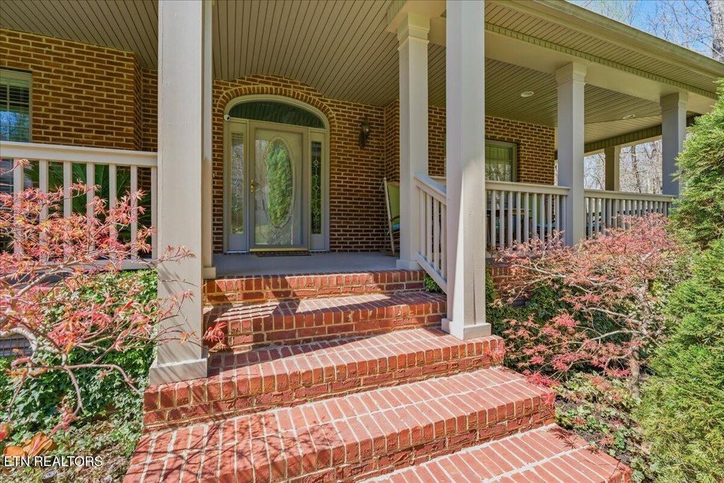 Welcome to timeless elegance in the prestigious Emory Woods Subdivision. This custom-built, all-brick traditional home offers the perfect blend of classic design, modern updates, and everyday comfort, all tucked away on a quiet cul-de-sac. A grand two-story foyer welcomes you inside, setting the stage for the home's impressive scale and craftsmanship. The great room is both elegant and inviting, anchored by soaring ceilings and overlooked by a stunning catwalk that enhances the home's open, architectural design. A richly appointed library with enclosed custom built-ins offers a sophisticated retreat for work or quiet relaxation. The recently remodeled kitchen is a true showstopper, featuring a large island, newer appliances, and seamless flow into the sun-filled breakfast room with access to the patio, ideal for morning coffee or evening gatherings. A formal dining room adds the perfect touch for hosting. The main level also features a versatile flex room, currently used as a guest suite, complete with a full handicapped-accessible bathroom, perfect for multi-generational living or guests. Upstairs, the generous primary suite is a true retreat with an attached bathroom featuring dual closets, double vanities with sitting area, a walk-in shower, and a spa-like soaking tub. Three additional bedrooms and another full bathroom provide plenty of space for family or guests. Outside, enjoy over half an acre of professionally landscaped, level yard backing up to serene TVA-owned wooded land for added privacy. The large, covered wraparound front porch invites you to slow down and enjoy peaceful Tennessee evenings. Additional highlights include an oversized, side entry 2-car garage with an electric car charging station, tankless water heater (2024), and a brand-new HVAC system (2026). Ideally located just minutes from Oak Ridge and Knoxville, this home offers refined living in one of the area's most desirable neighborhoods. Schedule your tour today!