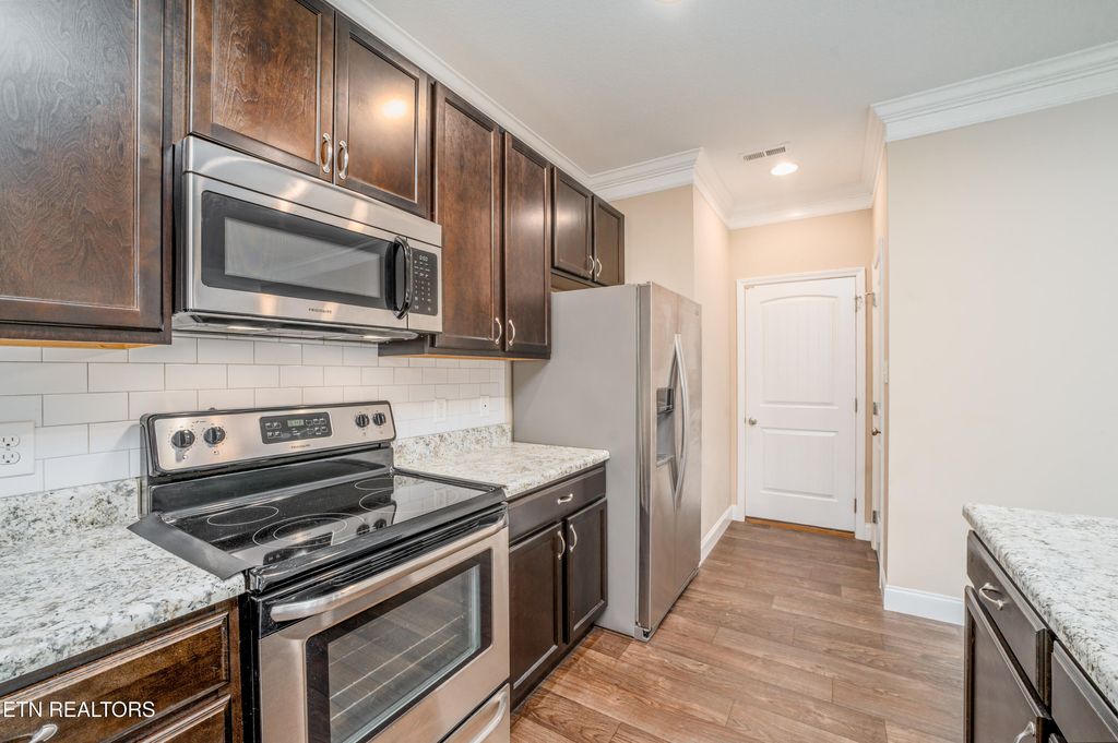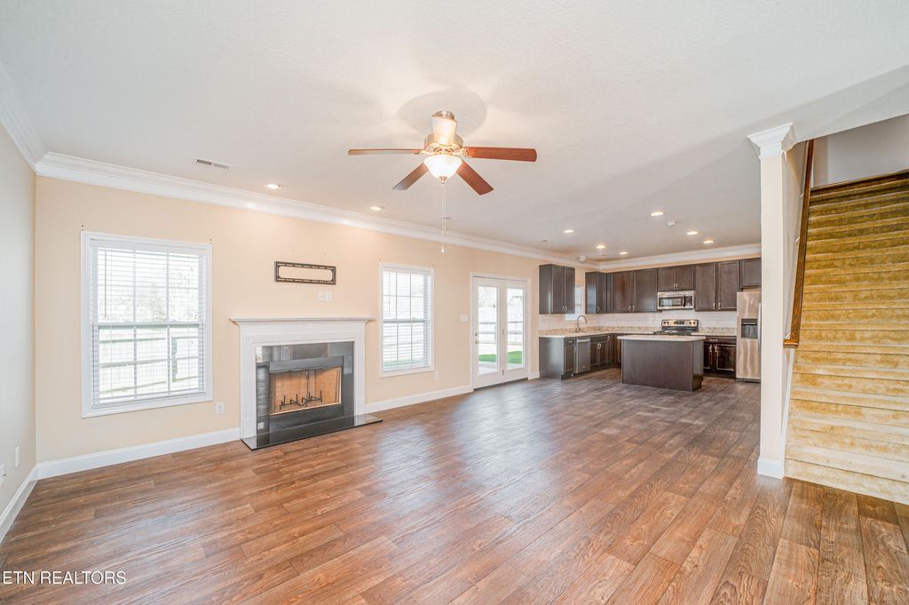 Well-maintained 2-story home in Hatties Place offering a functional layout and a highly convenient Karns location. The main level features an open living area with a gas fireplace, flowing into a spacious kitchen with granite countertops, subway tile backsplash, and a large island with ample storage, positioned just off the garage for easy daily living. A powder room completes the main level.