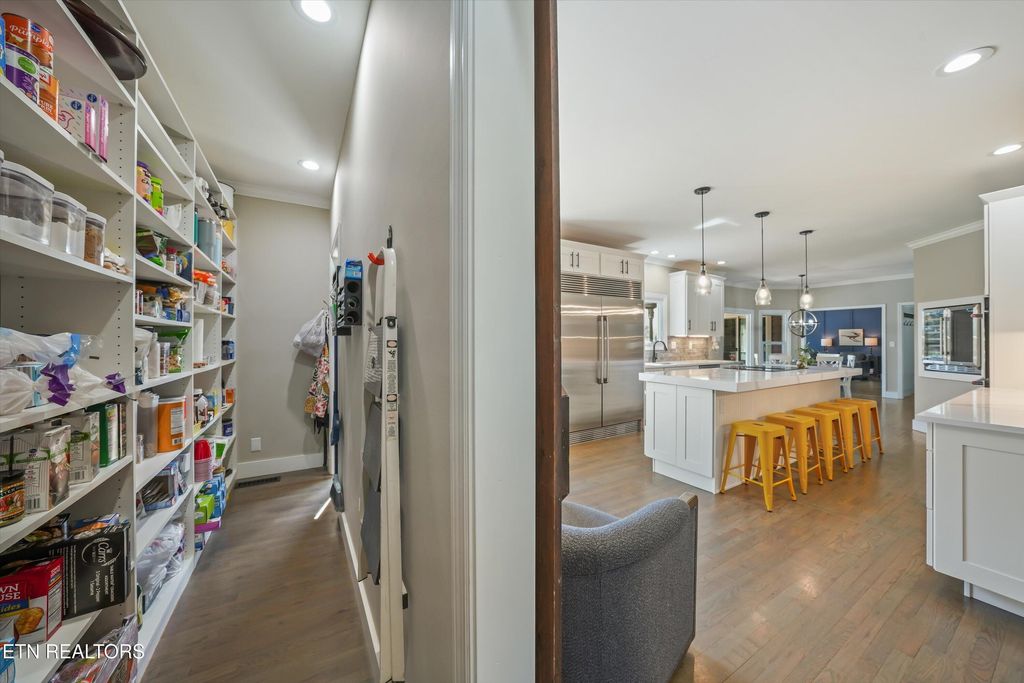 Inside, the kitchen was designed for those who love to cook and entertain at scale -- double wall ovens, Electrolux side-by-side refrigeration, beverage station, and an expansive custom walk-through pantry elevate both form and function. The vaulted great room anchors the home with dramatic ceiling lines and expansive views.