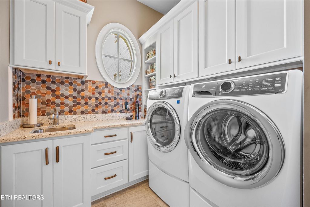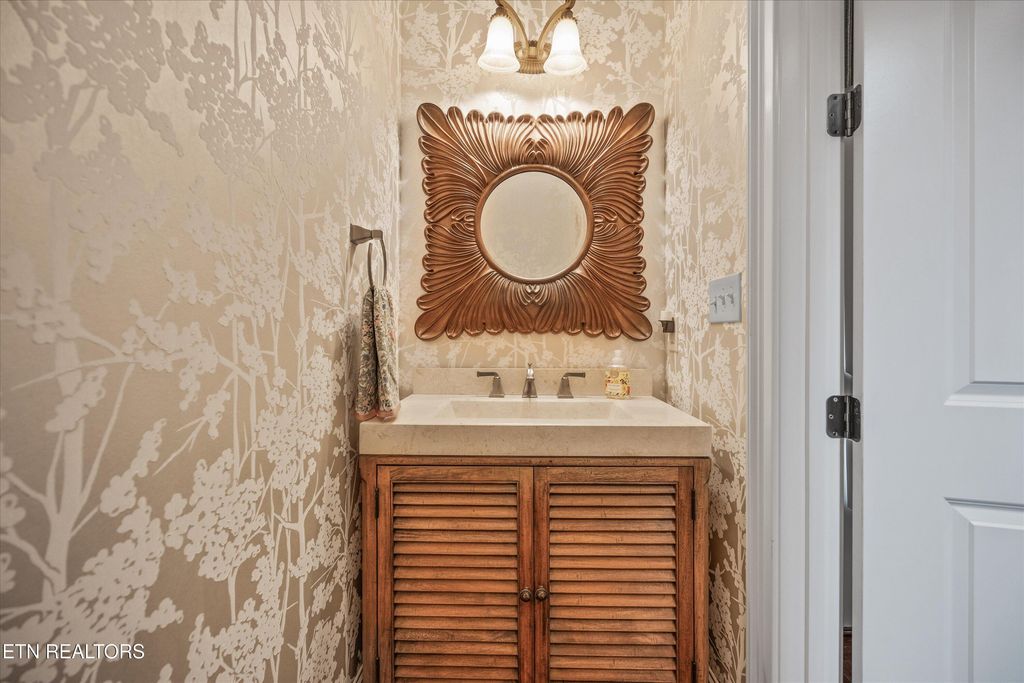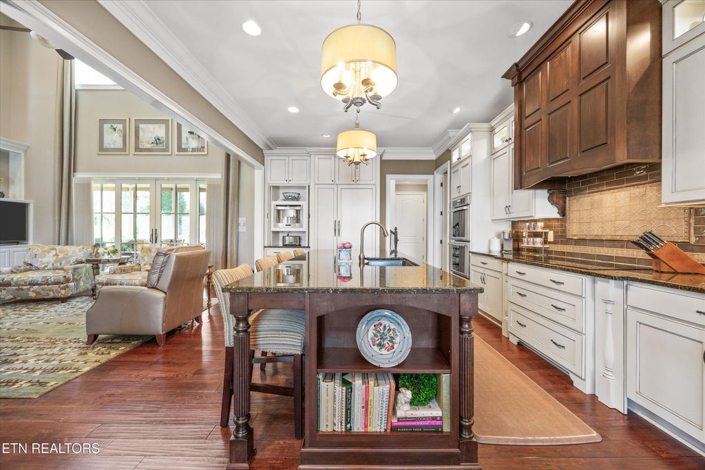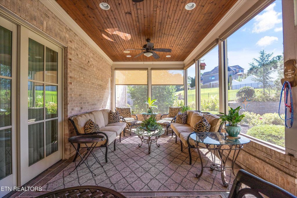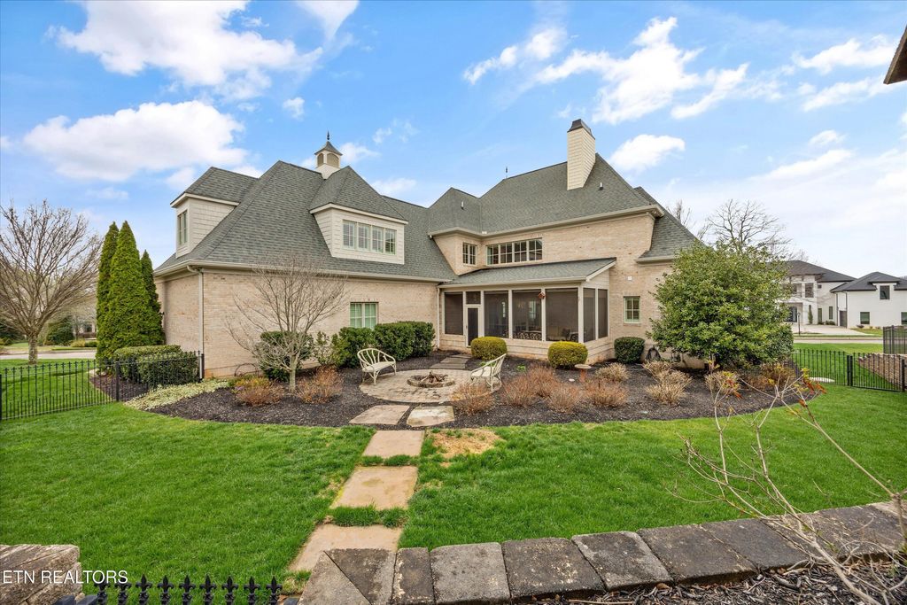 Where luxury meets convenience, this custom-built home in the desirable Jefferson Park lakefront community is truly elevated above the rest. Thoughtfully curated by an interior designer, every space blends functionality with refined living. A double-door entry with Provincial French charm opens to a two-story family room that extends to a spacious screened-in sunroom with tongue-and-groove ceiling, recessed lighting, and custom shades. The sunroom overlooks the extensively landscaped backyard with a patio and fire pit providing an inviting space for gatherings. The back yard has space to accommodate a pool. The chef's kitchen is a centerpiece, featuring a large island, Thermador built-in coffee station, double oven, illuminated double-stacked cabinetry, and a walk-in pantry. The formal dining room opens directly to its own outdoor patio, perfect for entertaining or al fresco dining. The main-level primary suite provides a spa-like retreat with dual vanities, a large walk-in shower, and custom-designed closets. A spacious laundry room and half bath sit just off the oversized three-car garage and side entry to the home. Upstairs includes two spacious bedrooms with Juliet balconies, private ensuite bathrooms leading to custom walk-in closets, and a dedicated office with peaceful views of Fort Loudoun Lake. A versatile bonus room doubles as a fourth bedroom or makes the ideal theater or hangout space. Off the bonus room there is a half bath, wet bar space, and second staircase. A generous walk-in storage room adds year-round practicality. Throughout the home, thoughtful upgrades include PowerView Hunter Douglas Silhouette shades, plantation shutters, and designer drapery. Modern comforts such as an intercom system, home speaker system, and smart thermostats complete this exceptional residence. Neighborhood amenities include a lakefront community pool, basketball court, pavilion, shared boat dock, and lighted walking trails. Jefferson Park offers easy access Concord Park, Markets at Choto, Davis Family YMCA and will offer future connection to the local greenway system. Contact listing agent for pool rendering.